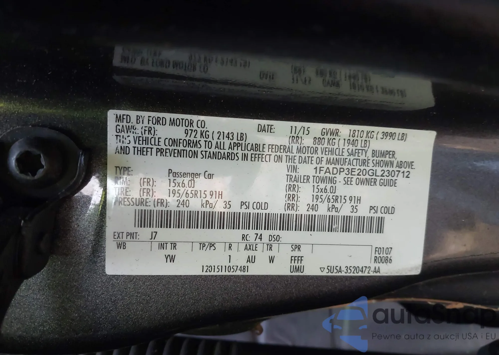 • VIN 1FADP3E20GL230712