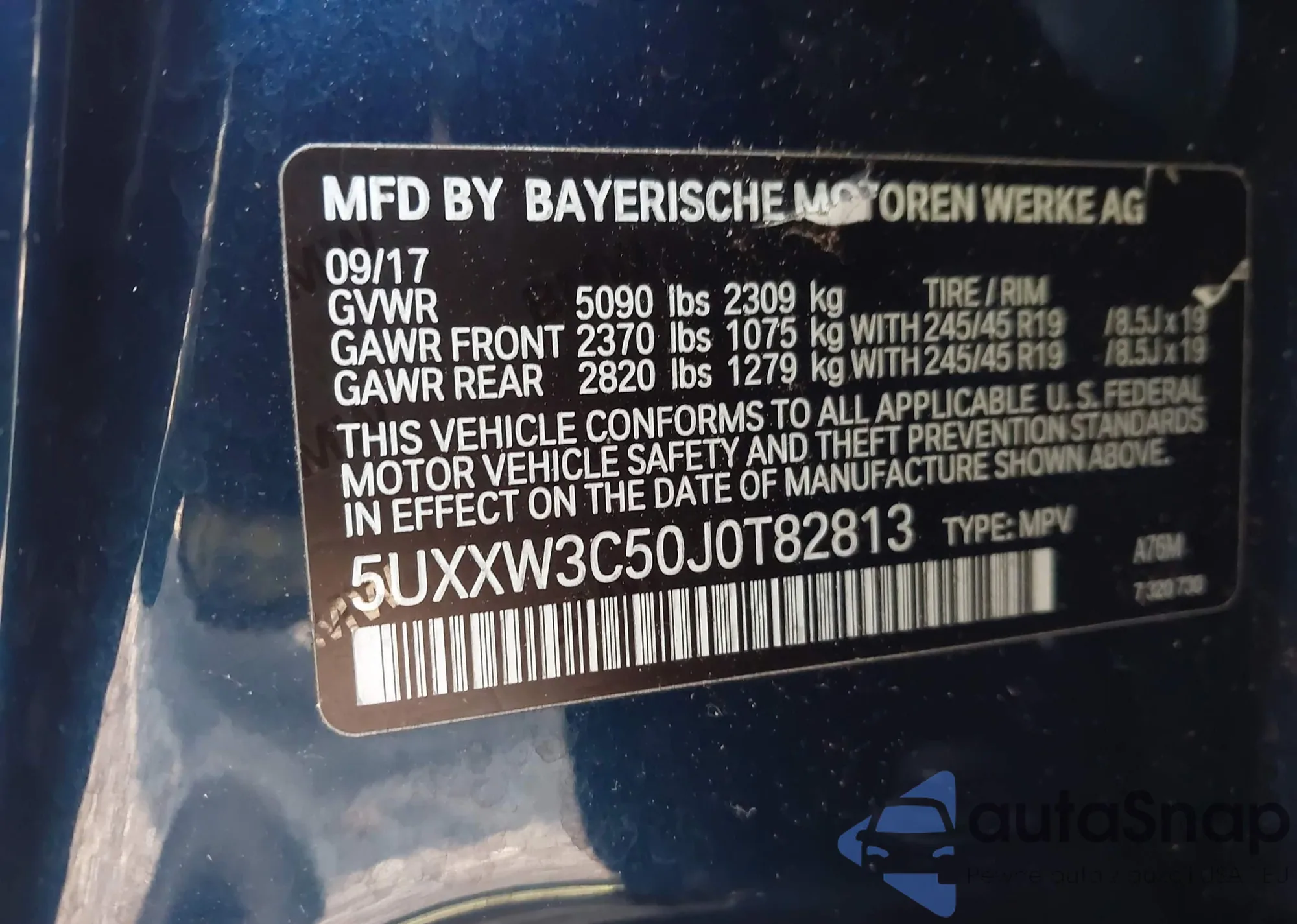• VIN 5UXXW3C50J0T82813