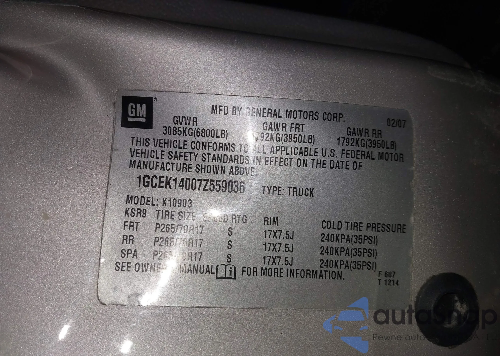• VIN 1GCEK14007Z559036