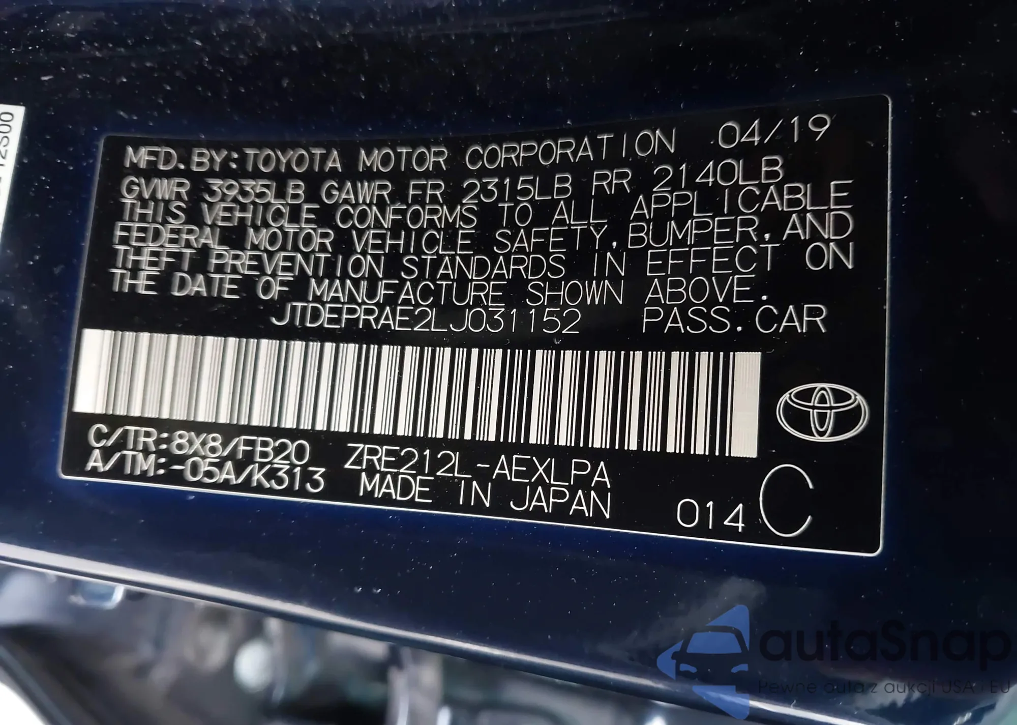 • VIN JTDEPRAE2LJ031152