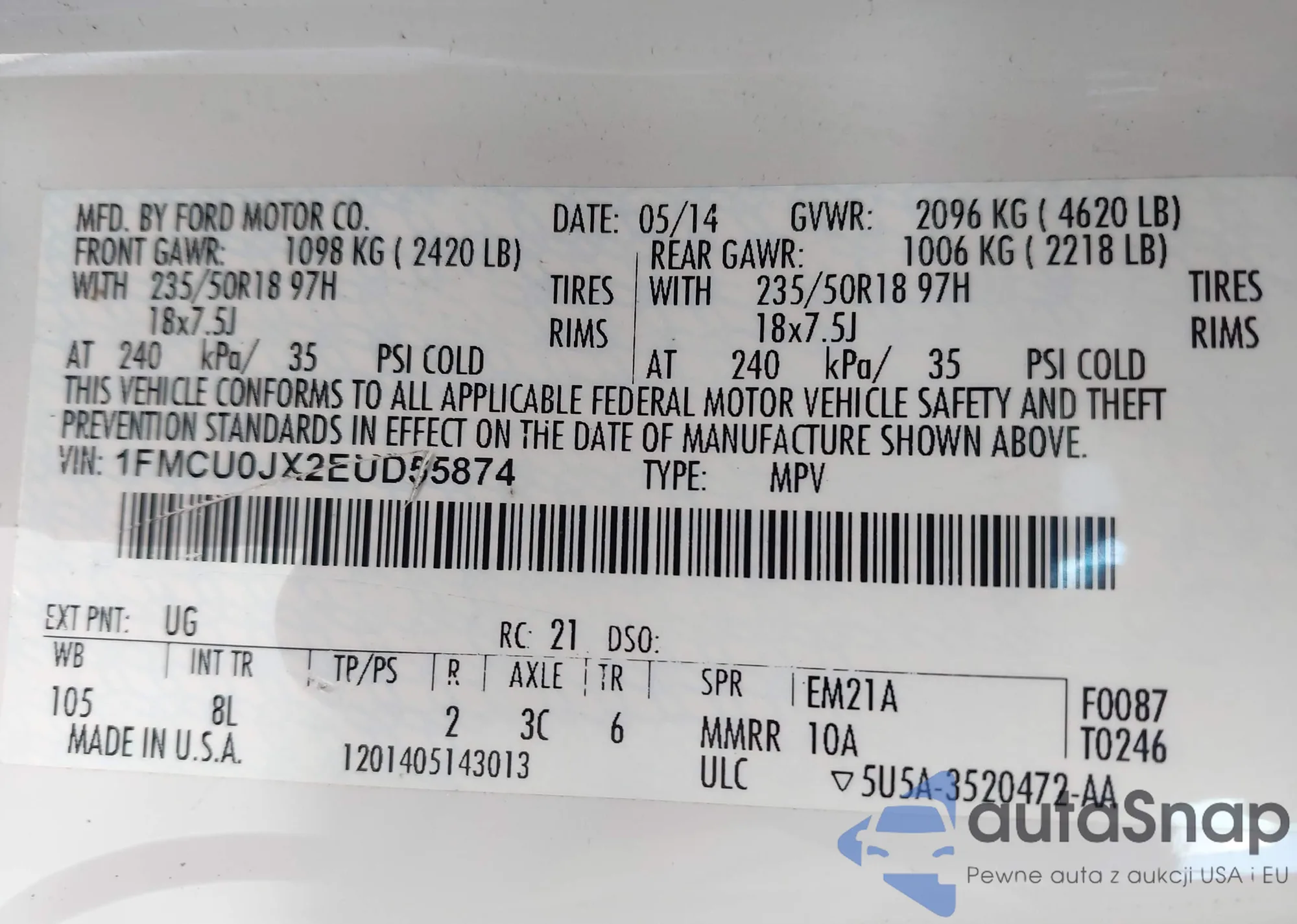 • VIN 1FMCU0JX2EUD55874