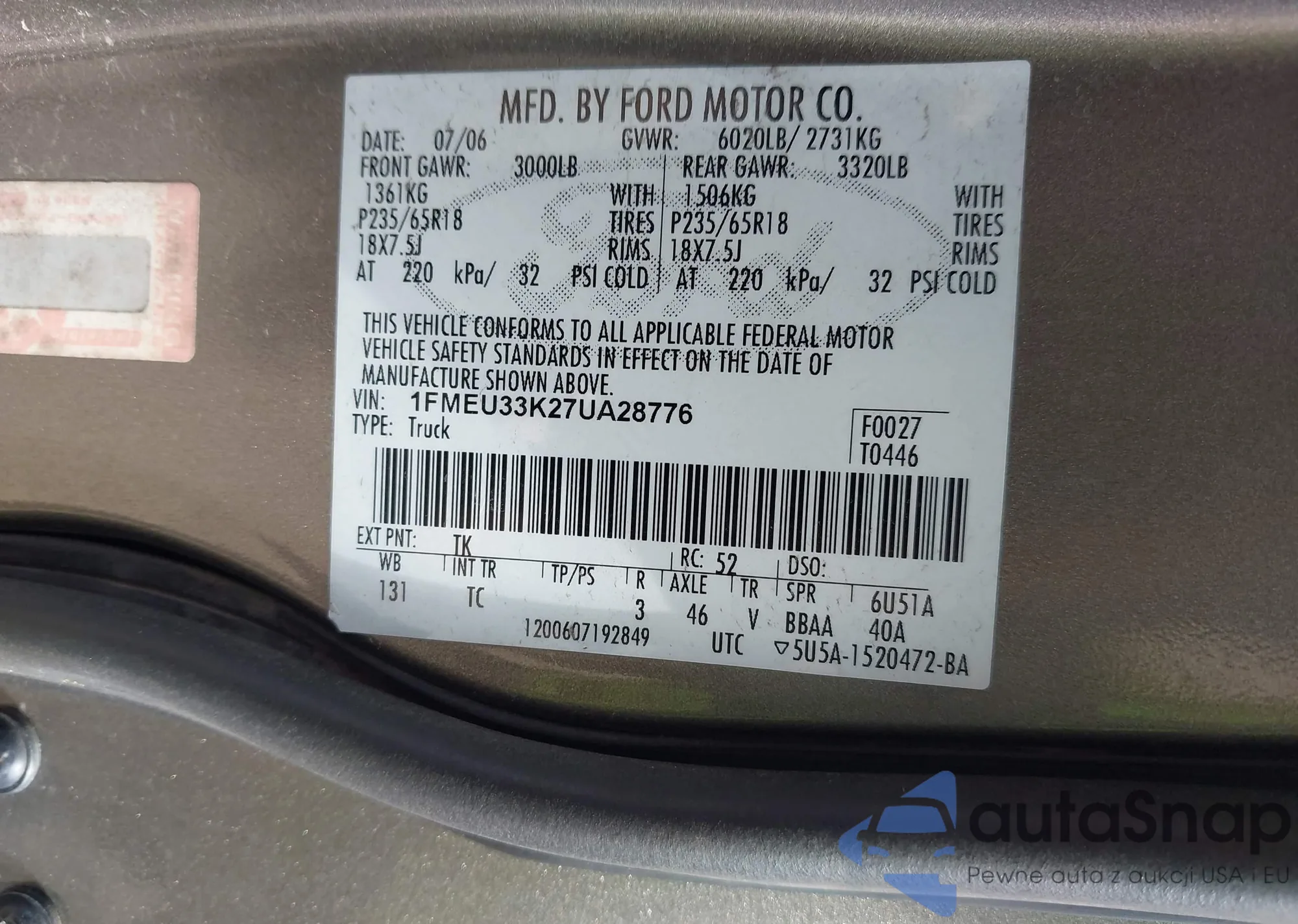 • VIN 1FMEU33K27UA28776