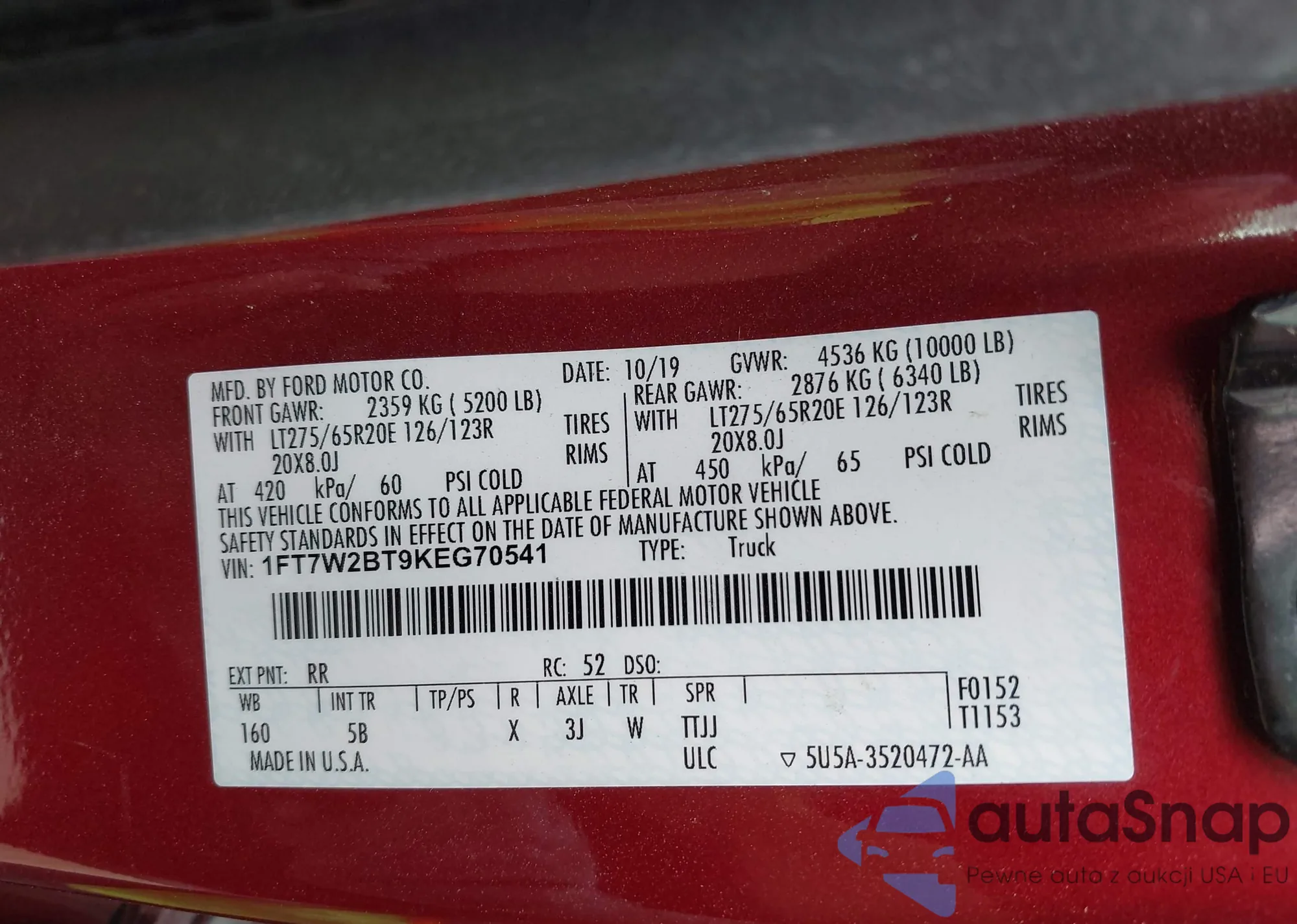 • VIN 1FT7W2BT9KEG70541