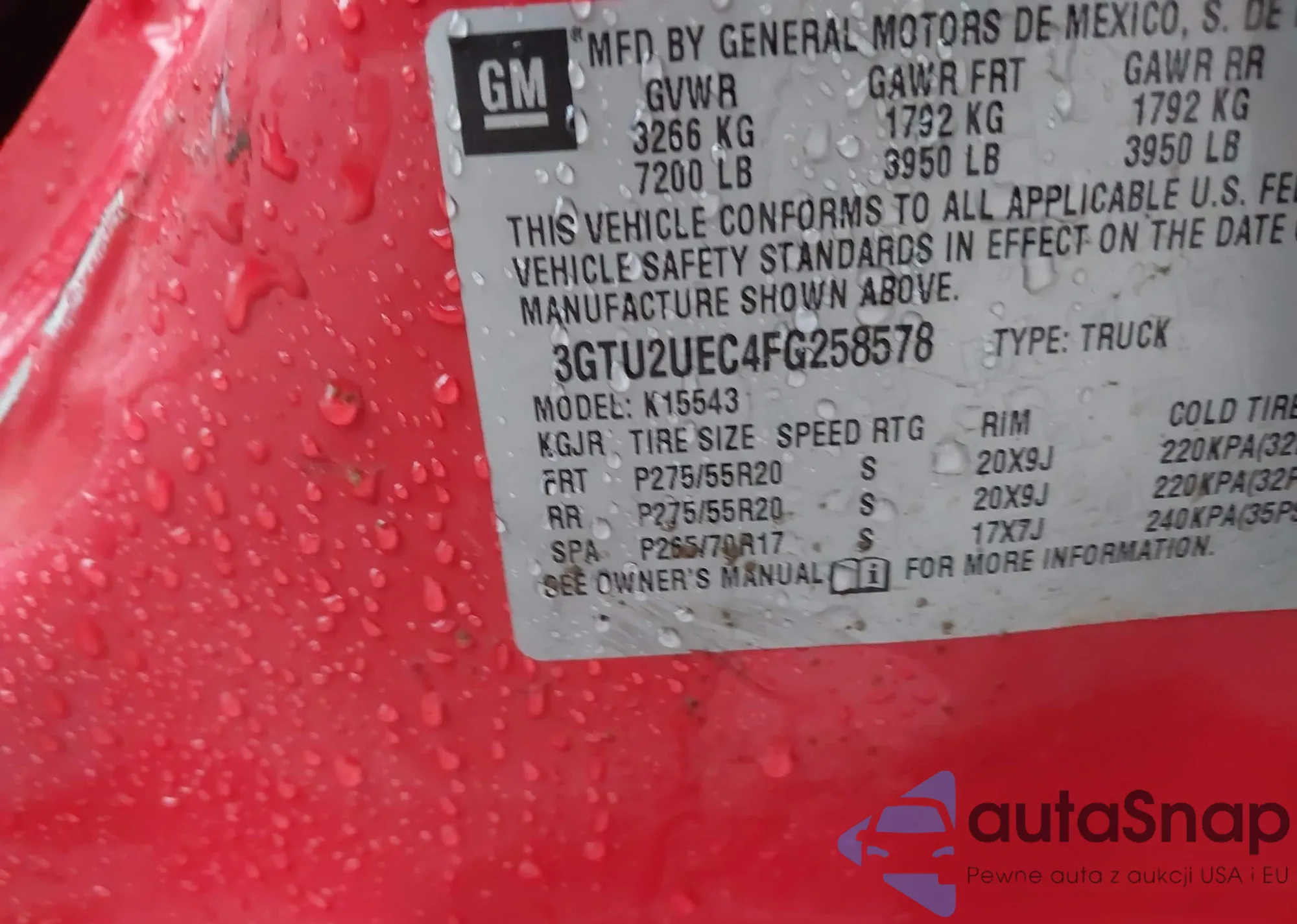 LOT: 43803314 VIN: 3GTU2UEC4FG258578