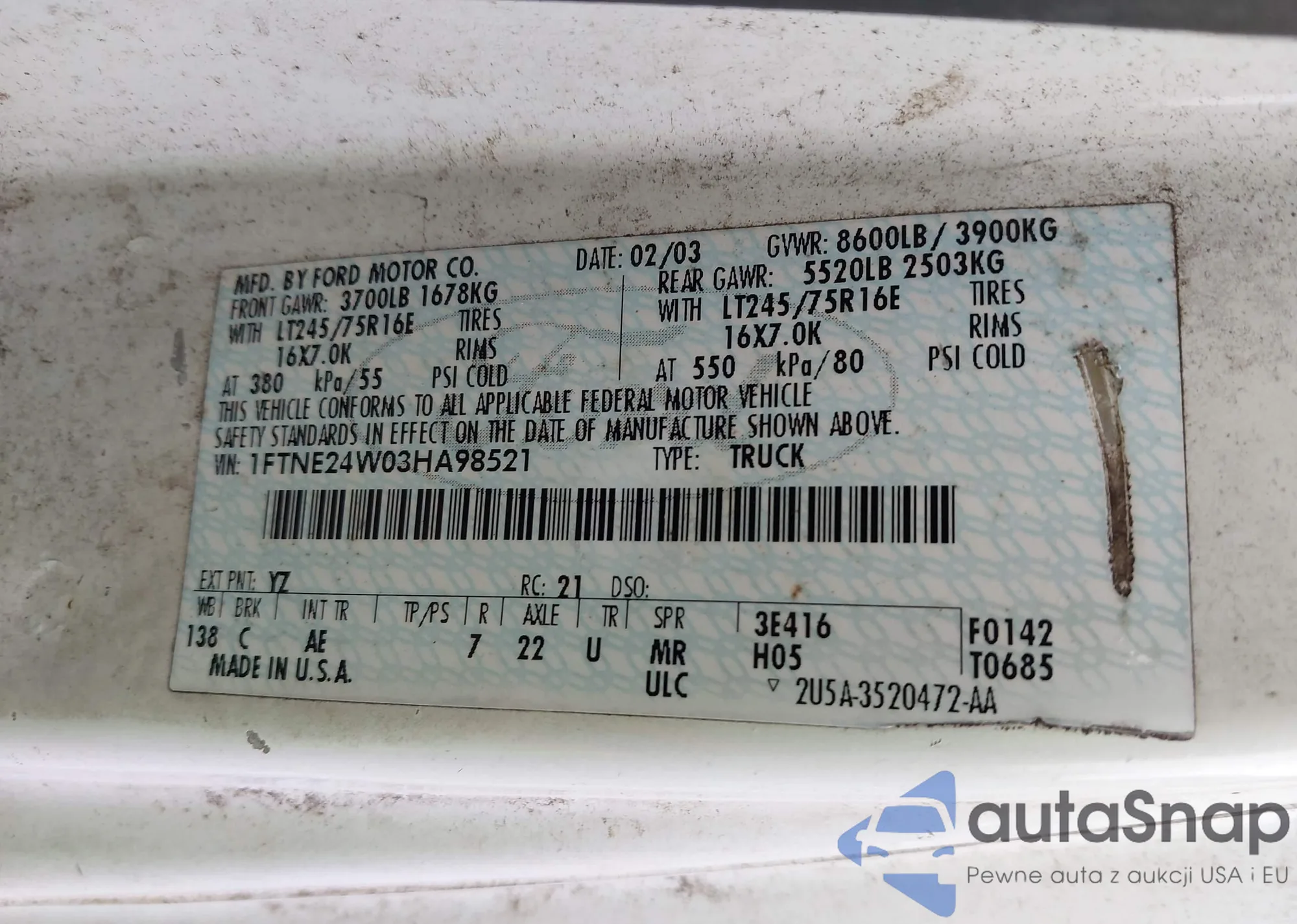 LOT: 43845076 VIN: 1FAFP34301W206306