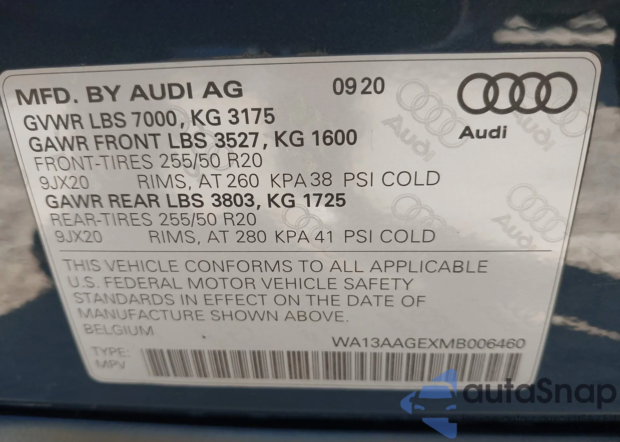 • VIN WA13AAGEXMB006460
