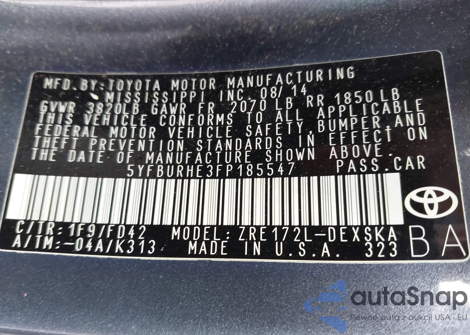 • VIN 5YFBURHE3FP185547