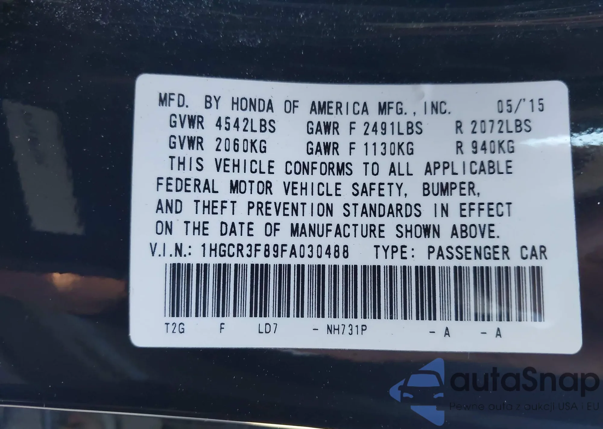 • VIN 5FNYF6H59GB025723