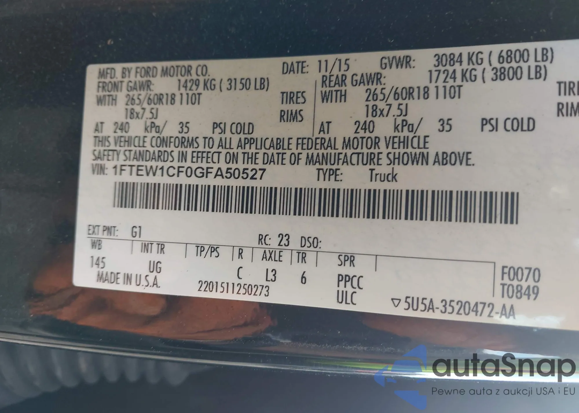 • VIN 1FTEW1CF0GFA50527