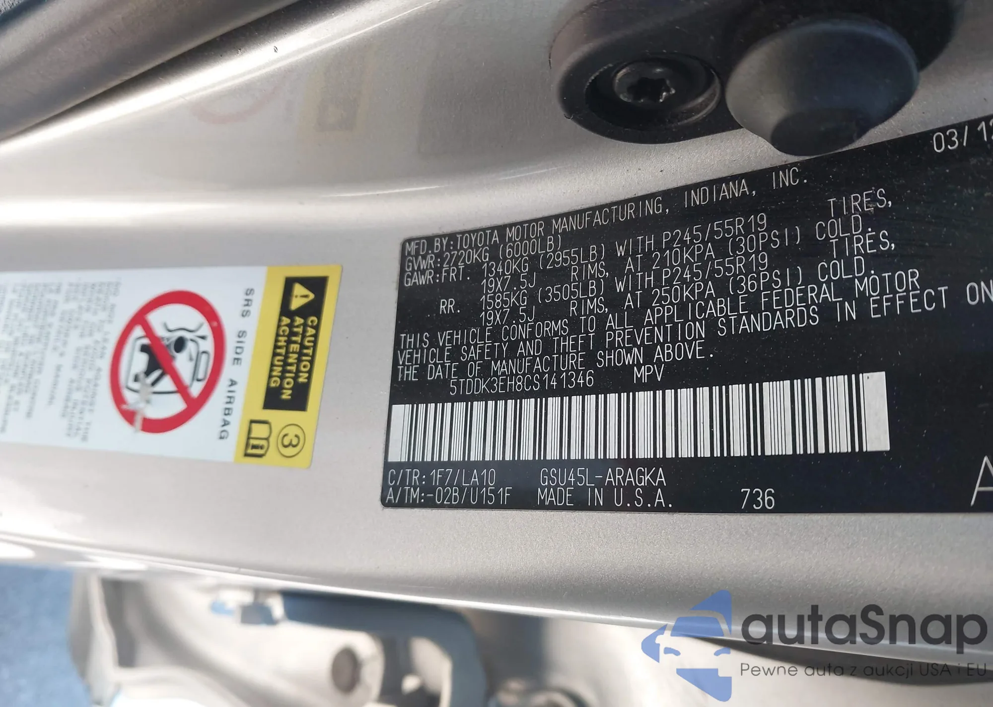 • VIN 5TDDK3EH8CS141346