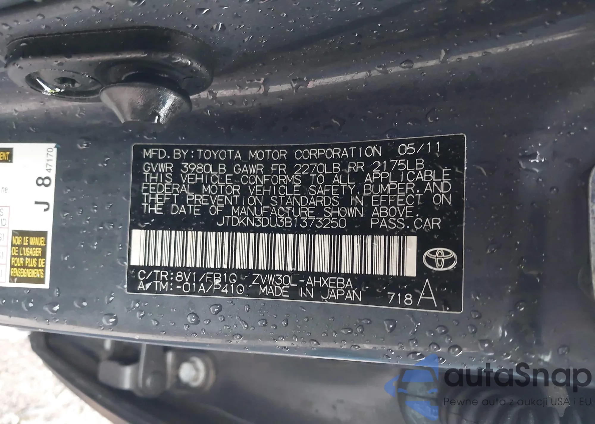 • VIN JTDKN3DU3B1373250