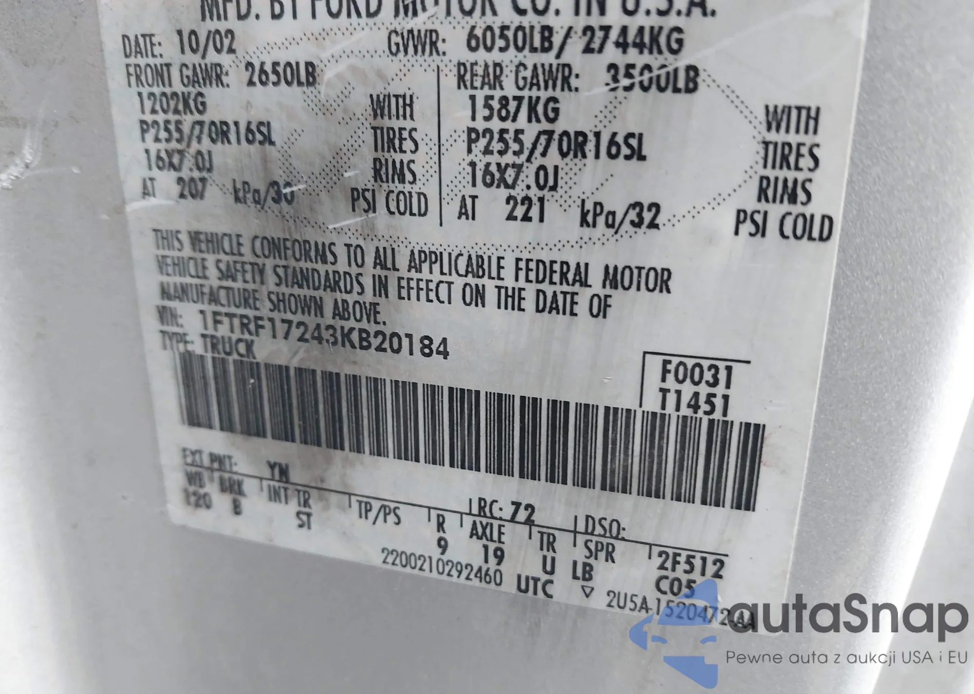 • VIN 1FMEU17L2VLA13463