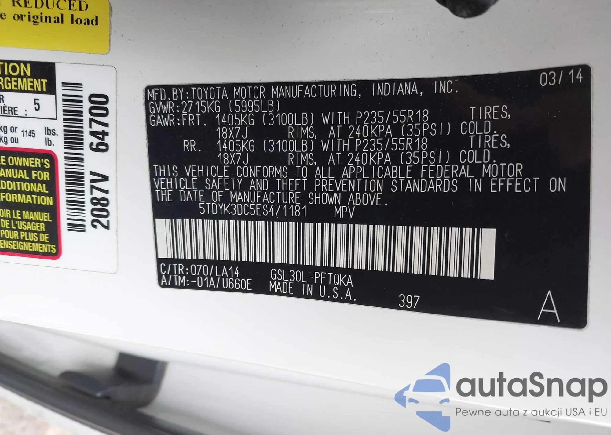 • VIN 5TDYK3DC5ES471181