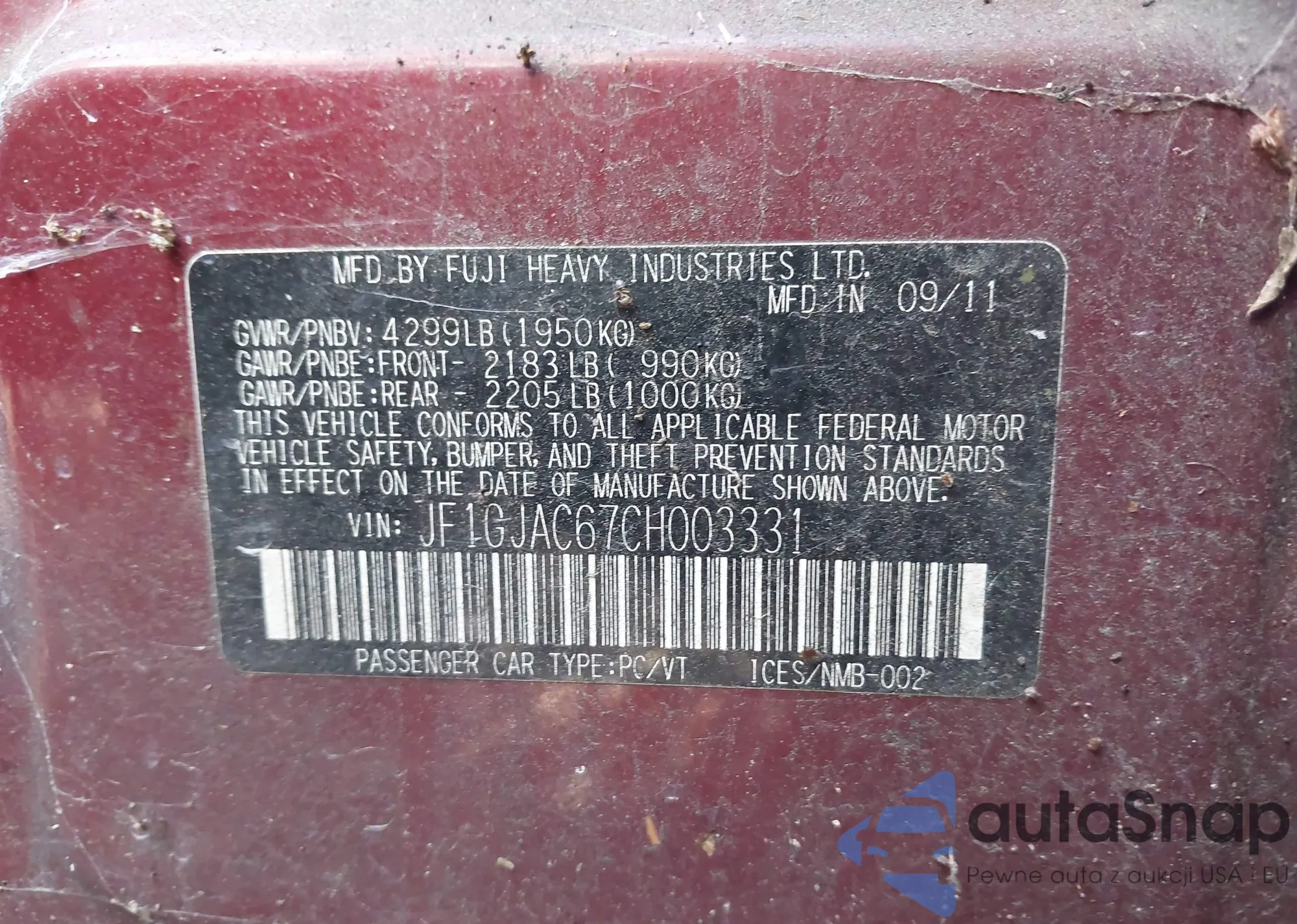 • VIN JF1GJAC67CH003331