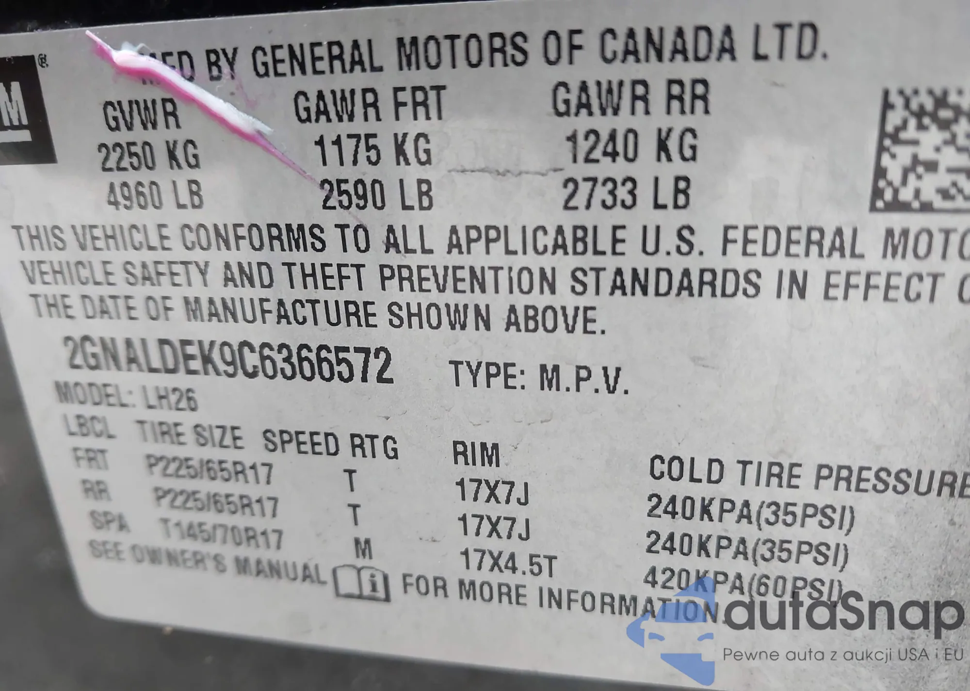 • VIN 2GKALMEK5H6133857