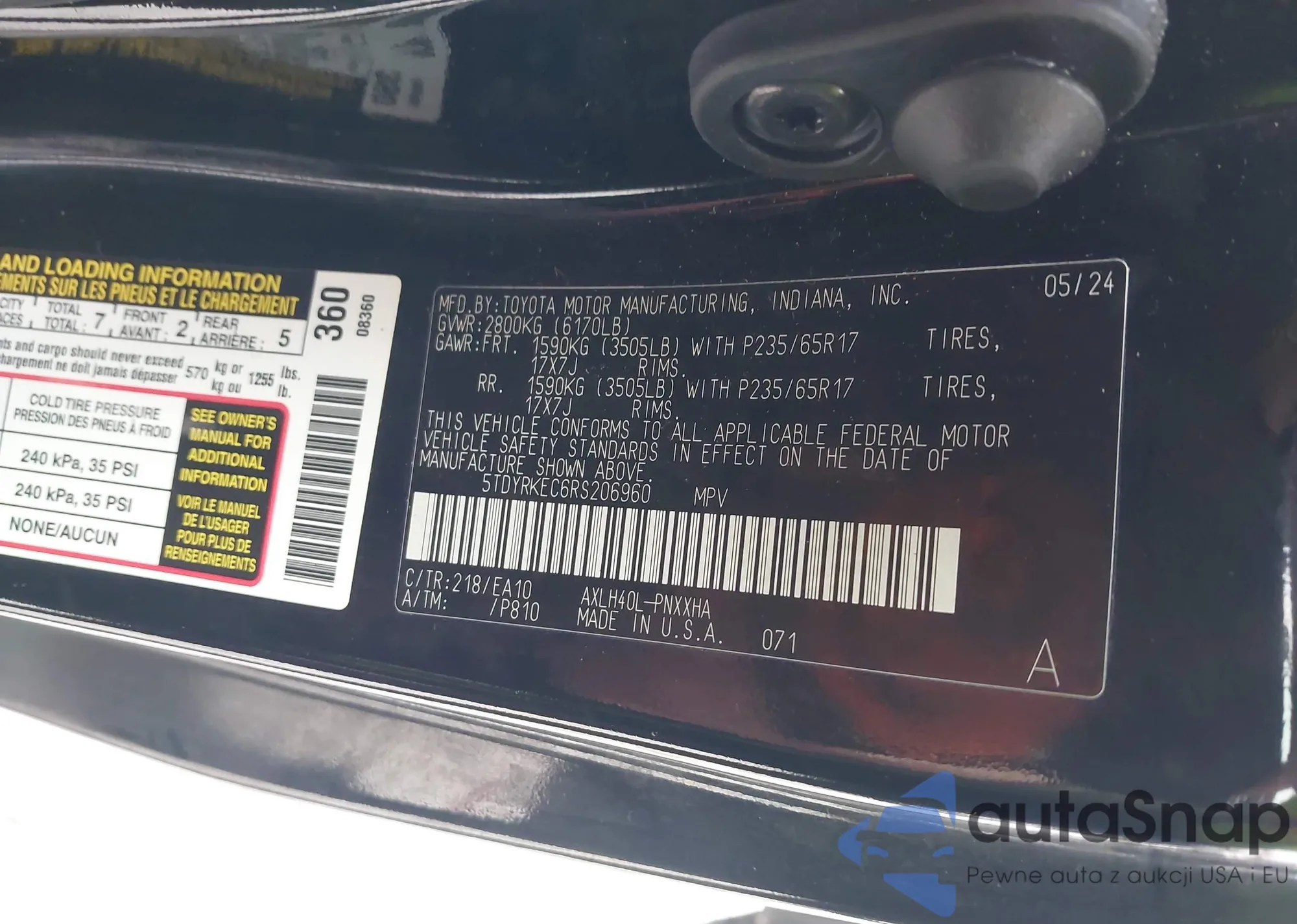• VIN 5TDYRKEC6RS206960