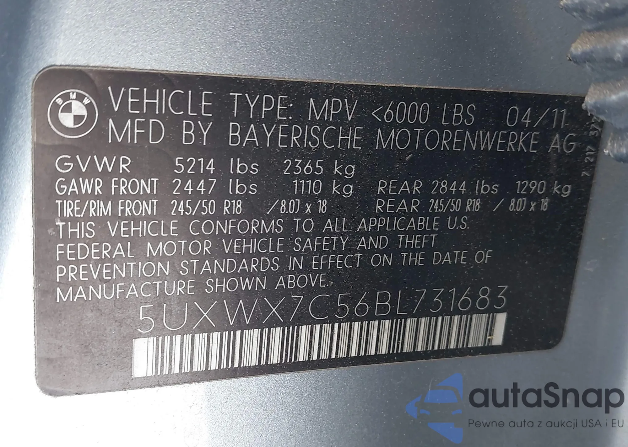 • VIN 5UXWX7C56BL731683