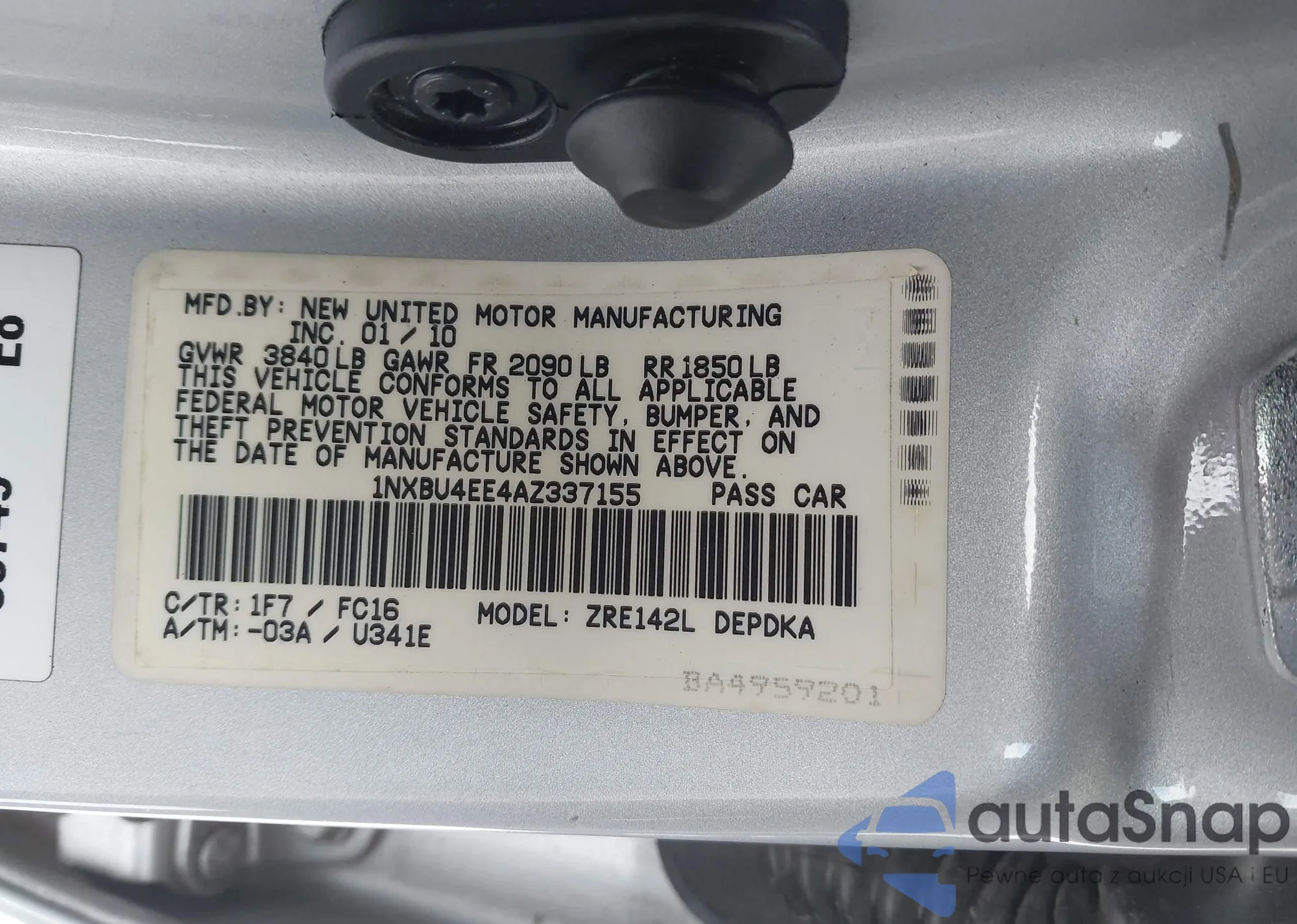 • VIN 4T1DAACK0SU525780