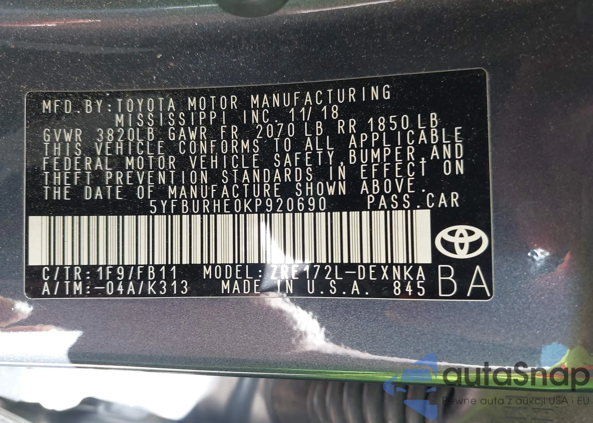 • VIN 5YFBURHE0KP920690