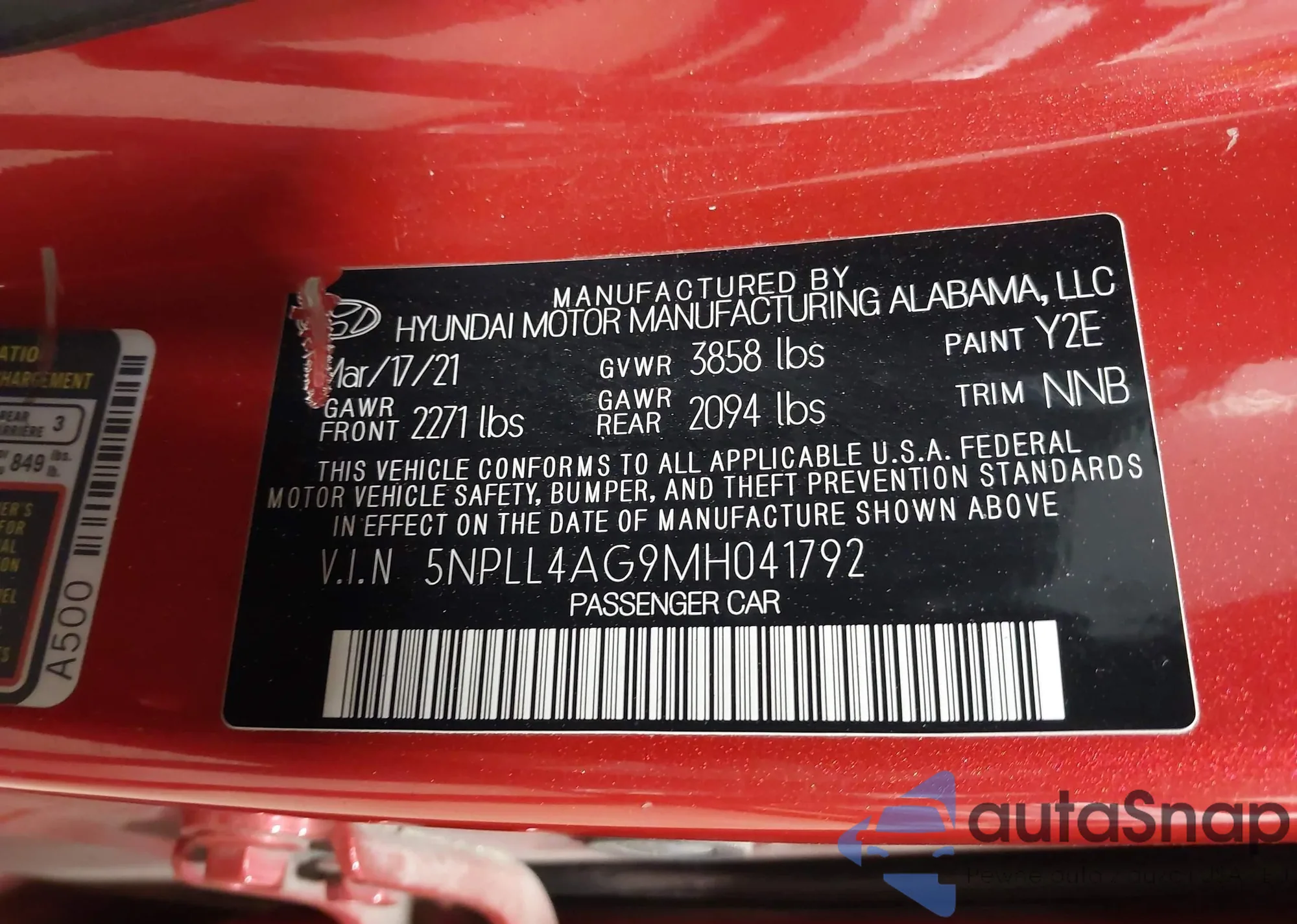• VIN 5NPLL4AG9MH041792