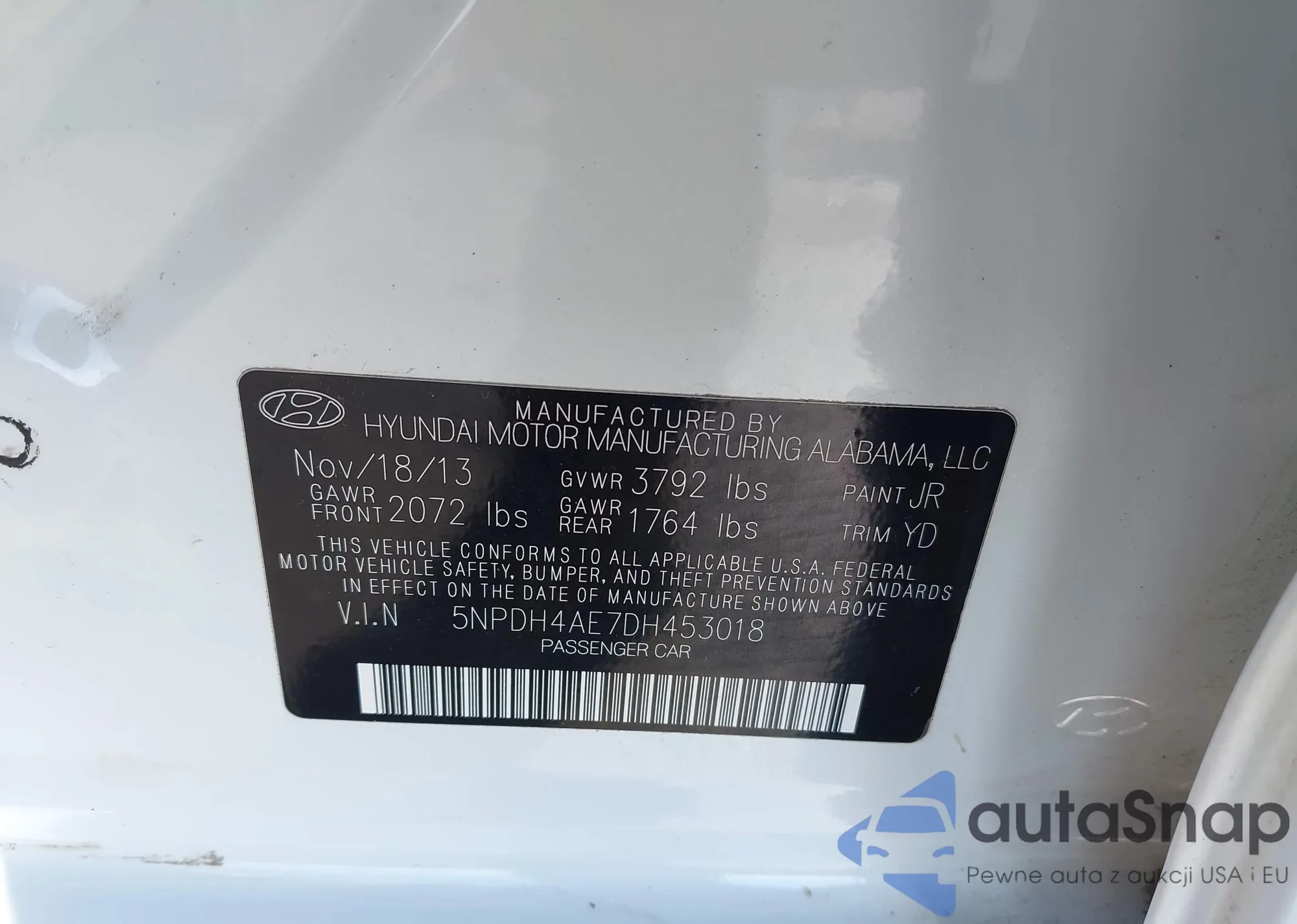 LOT: 43704480 VIN: 5NPDH4AE7DH453018