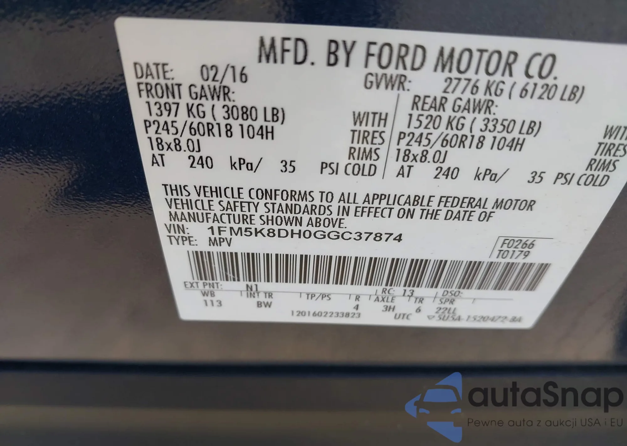 • VIN 1FM5K8DH0GGC37874