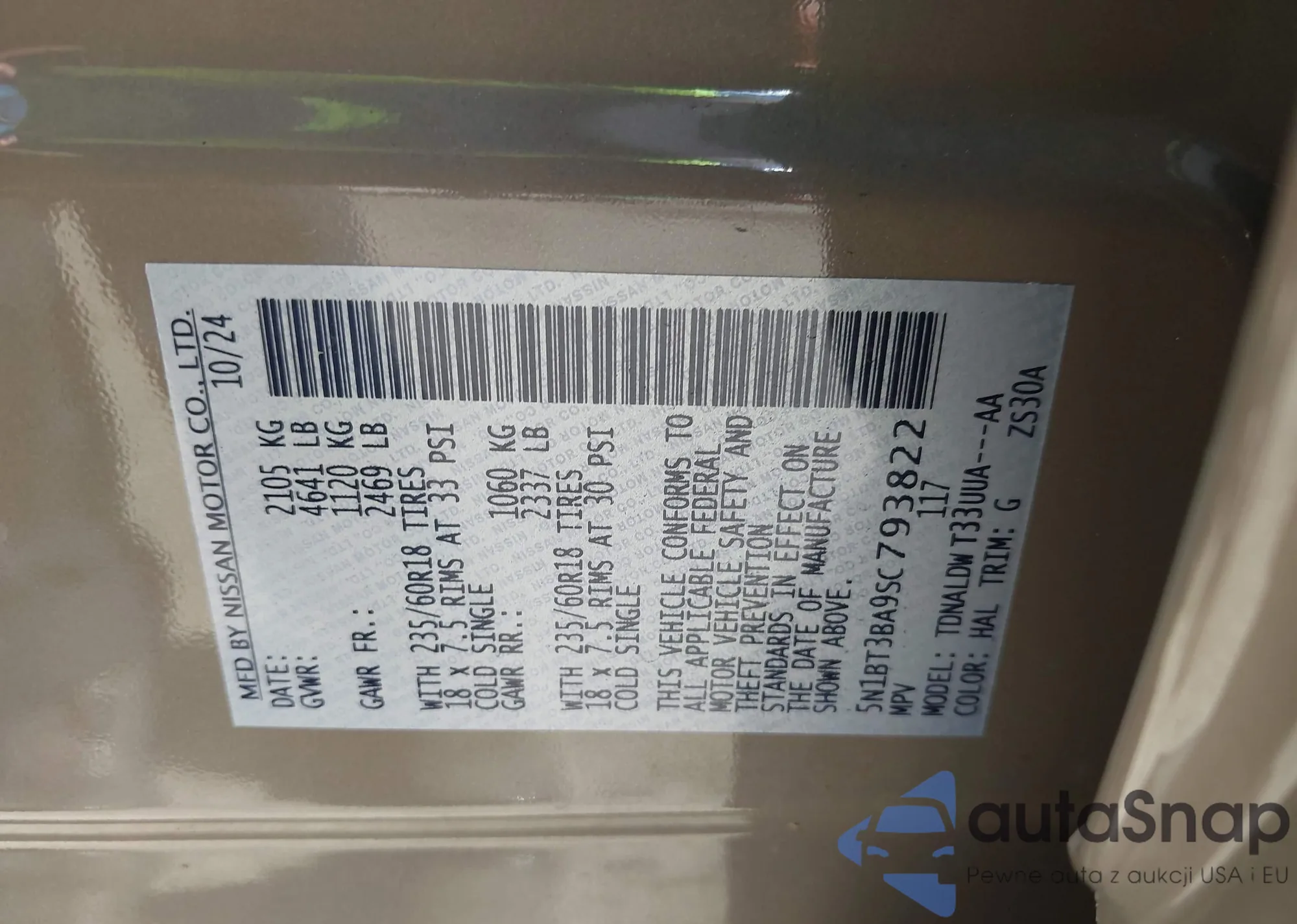 LOT: 43755276 VIN: 5N1BT3BA9SC793822