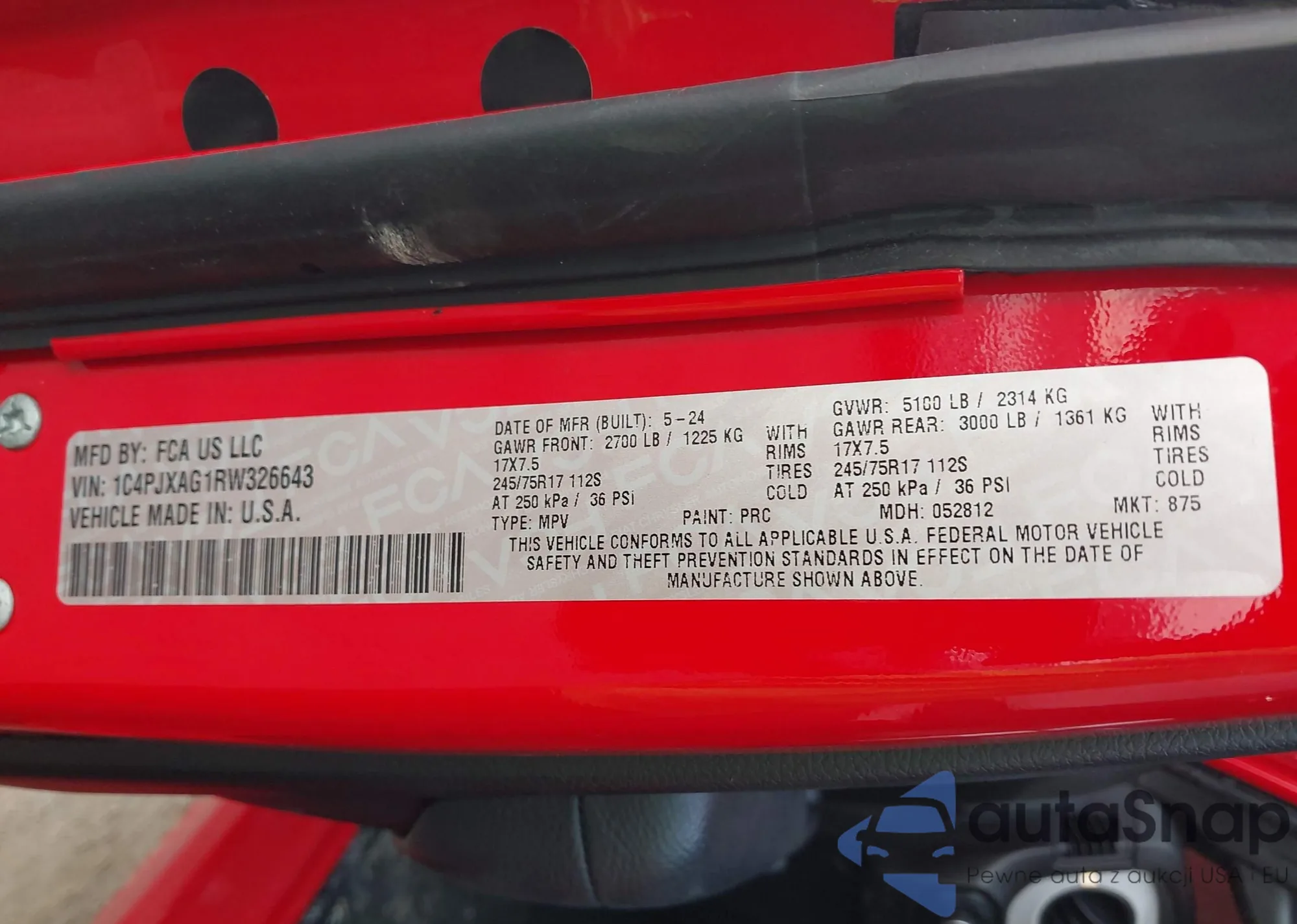 • VIN 1C4PJXAG1RW326643