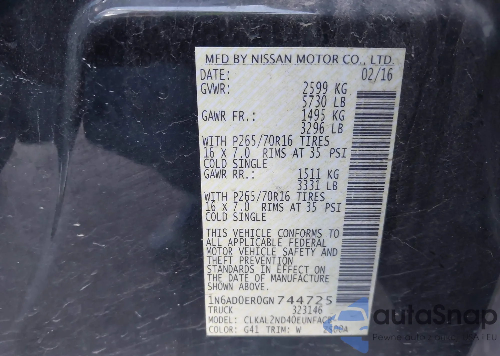 • VIN 1N6AD0ER0GN744725