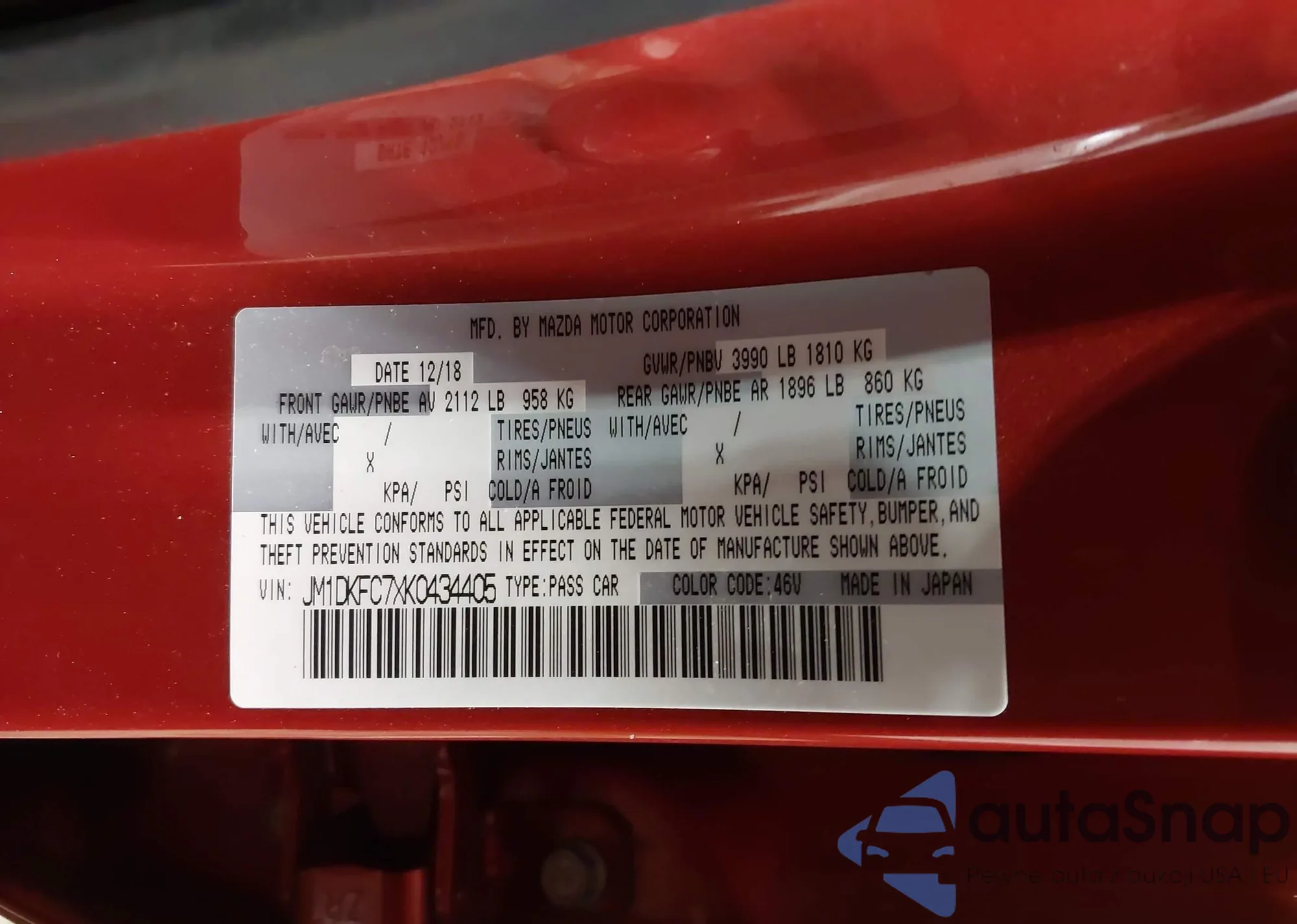 LOT: 43941134 VIN: JM1BL1H53A1206236
