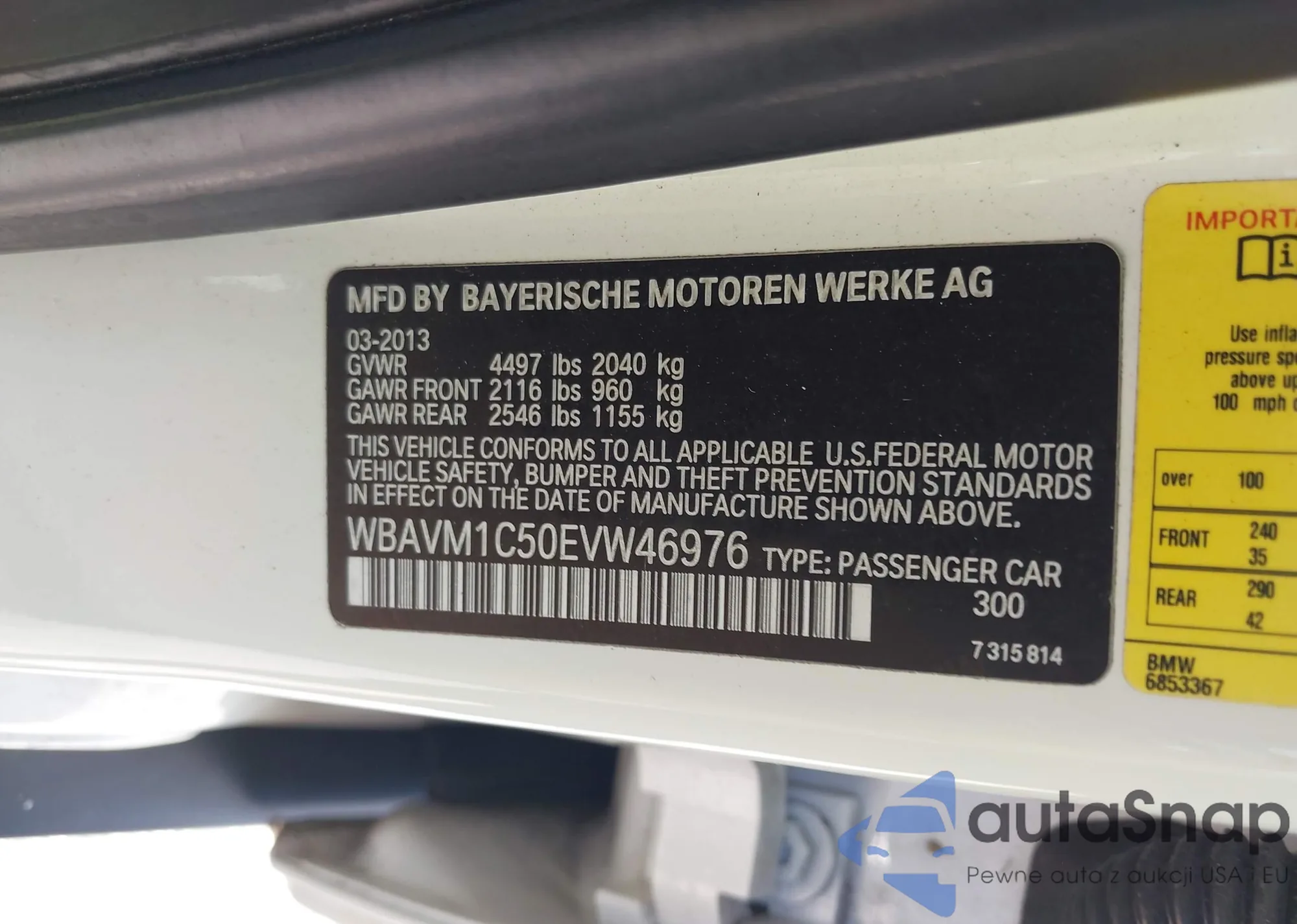• VIN WBAVM1C50EVW46976