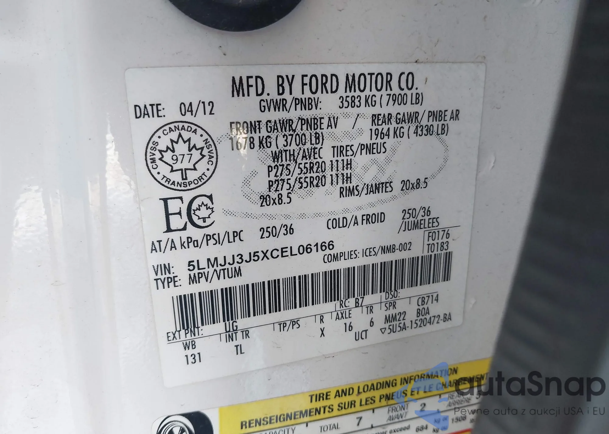 • VIN 5LMJJ3J5XCEL06166