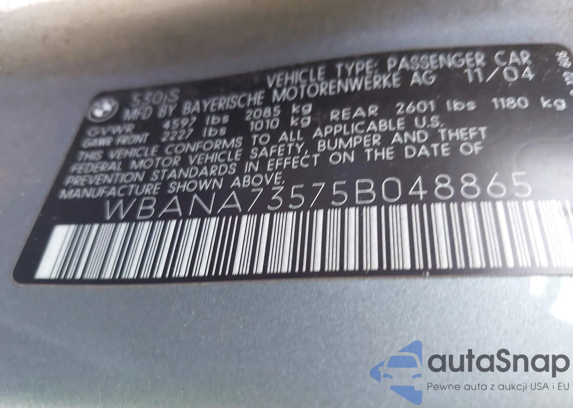 • VIN KNAFU6A25A5160376