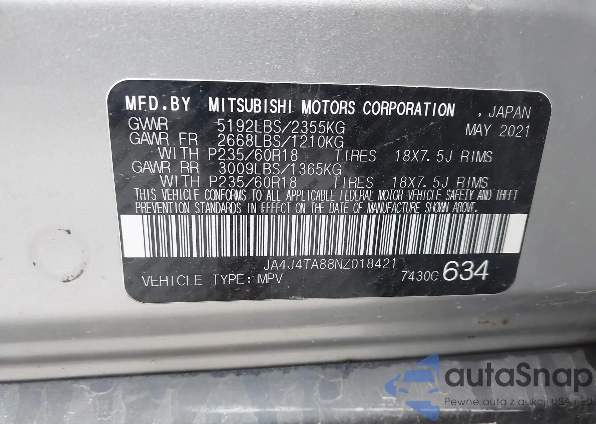 • VIN JA4J4TA88NZ018421