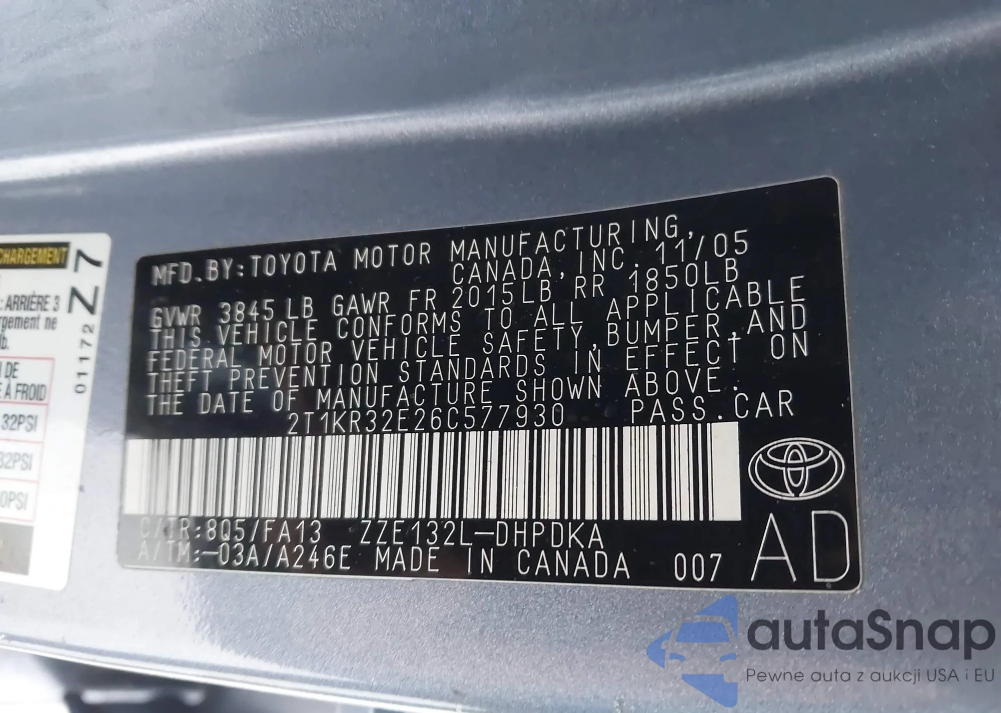 • VIN 2T1KR32E26C577930