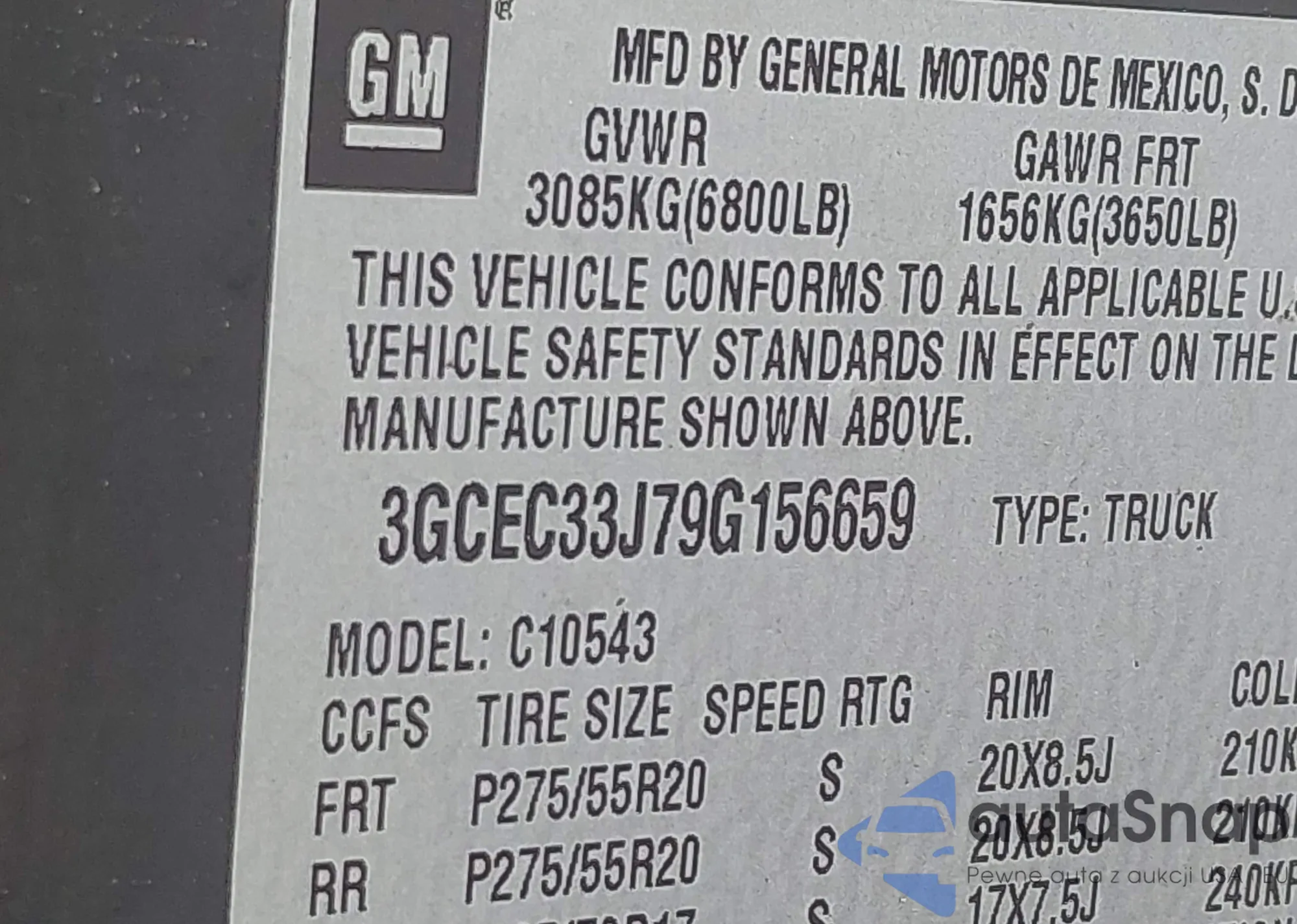 • VIN 3GCEC33J79G156659