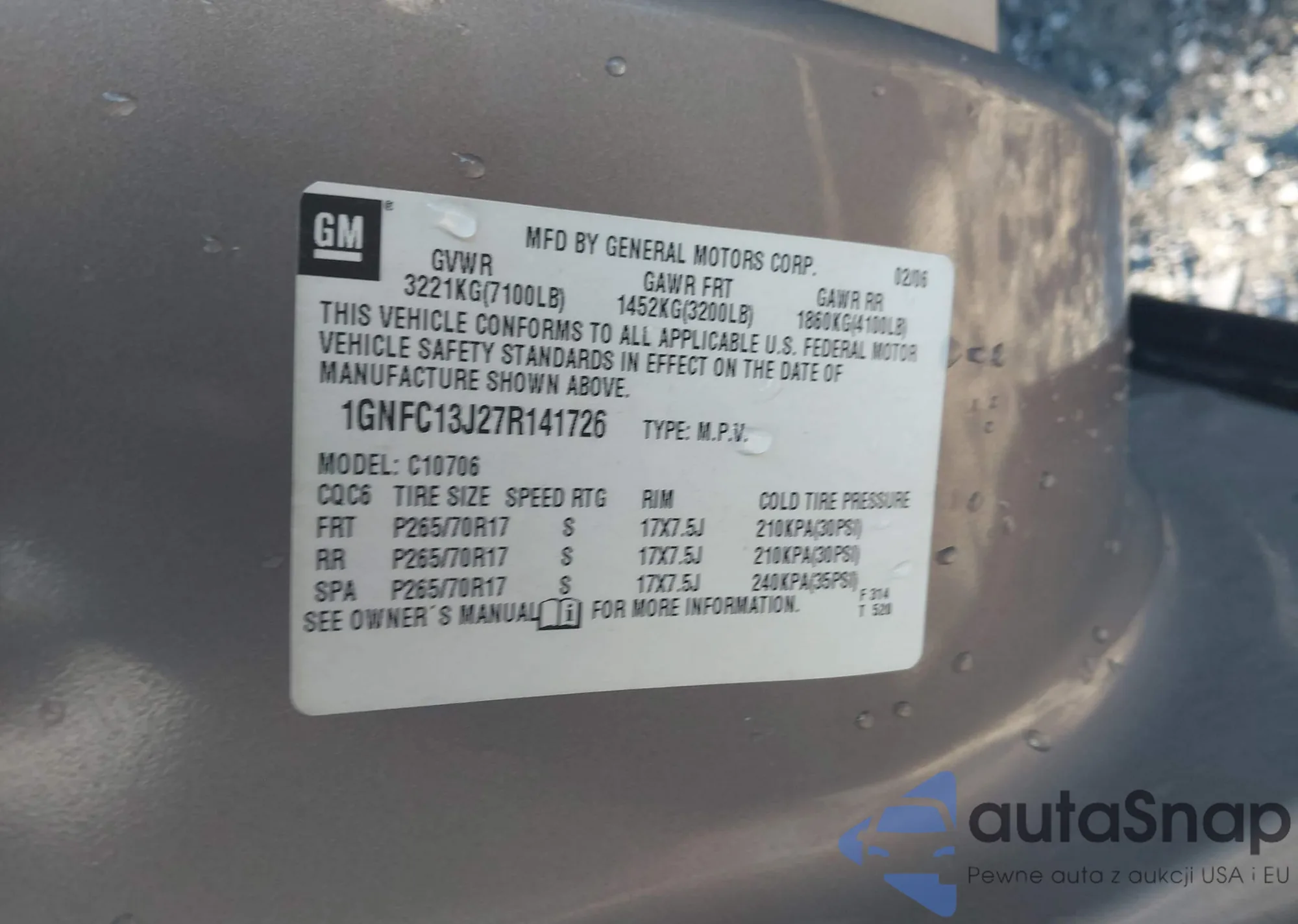 • VIN 1GNFC13J27R141726