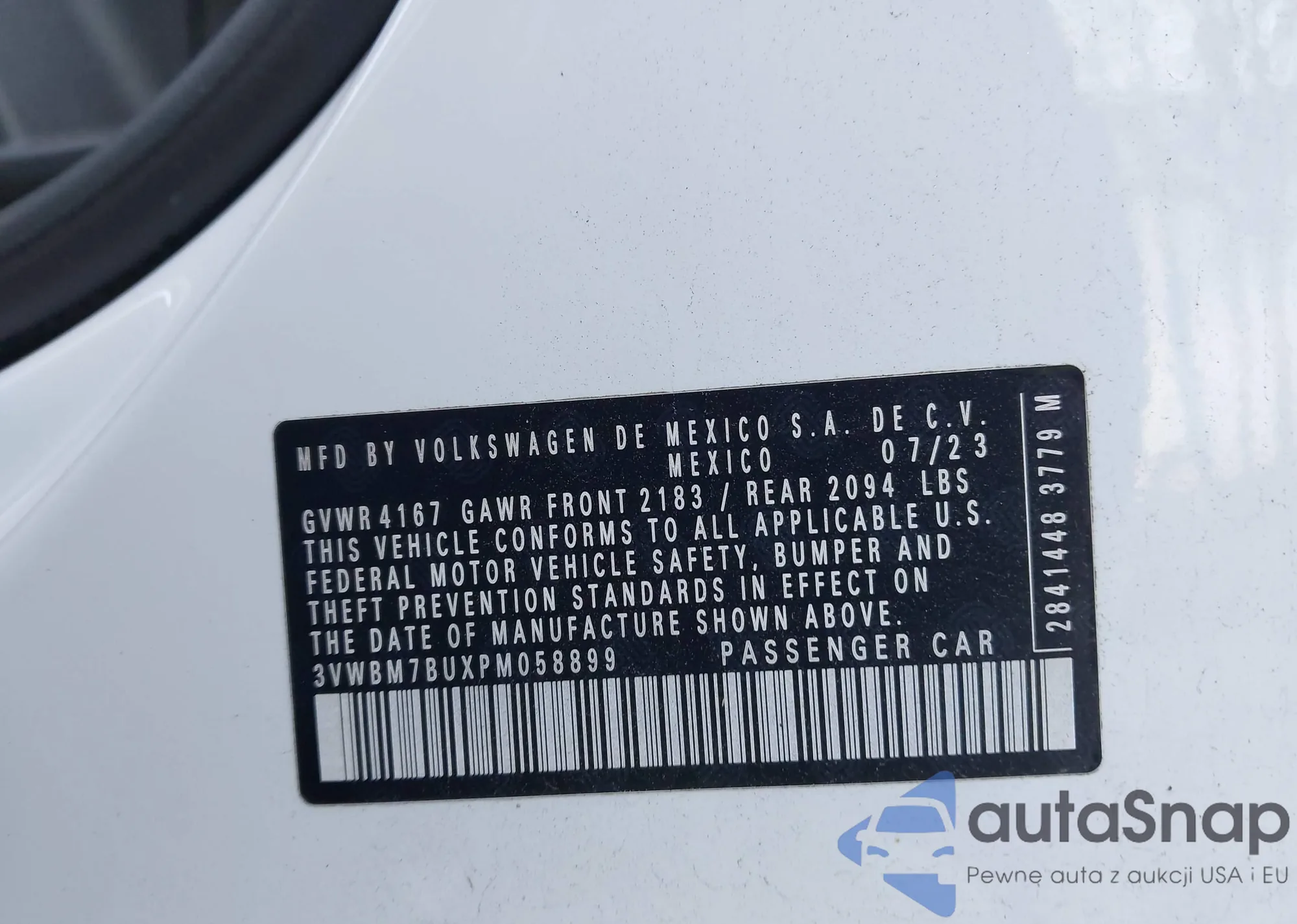 • VIN 3VWBM7BUXPM058899