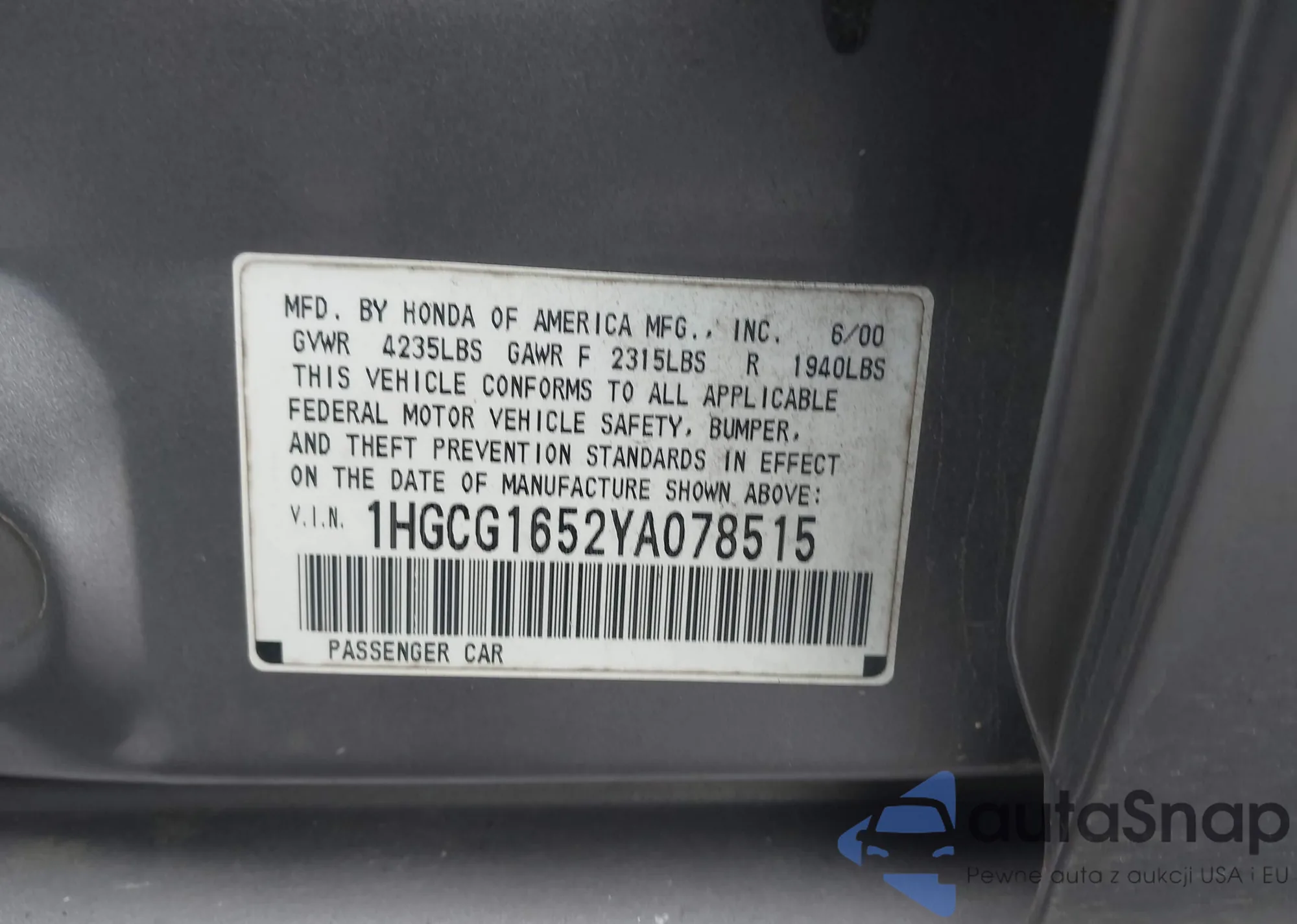 • VIN 1HGCG1652YA078515