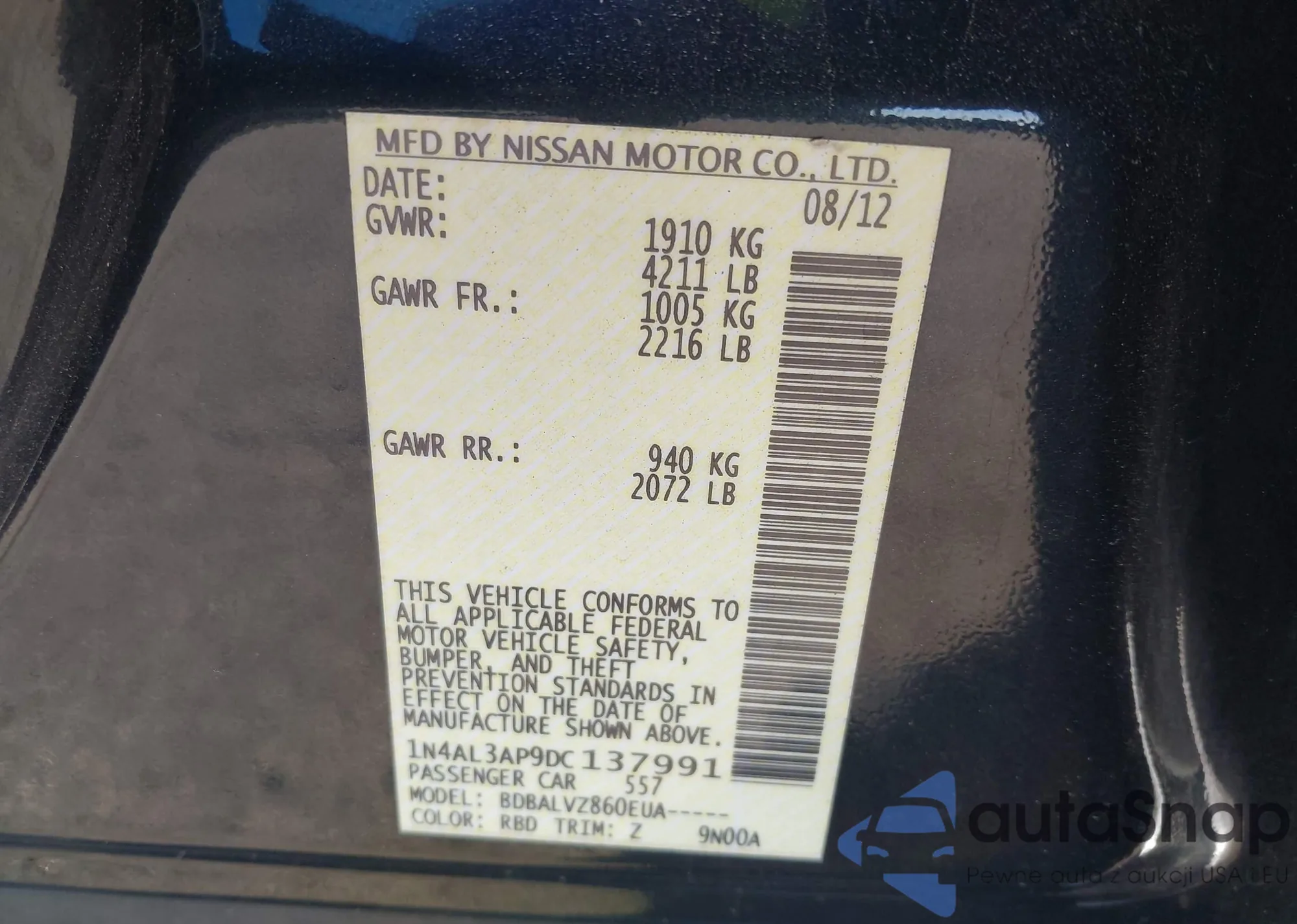 • VIN JN8AS5MV9AW141427