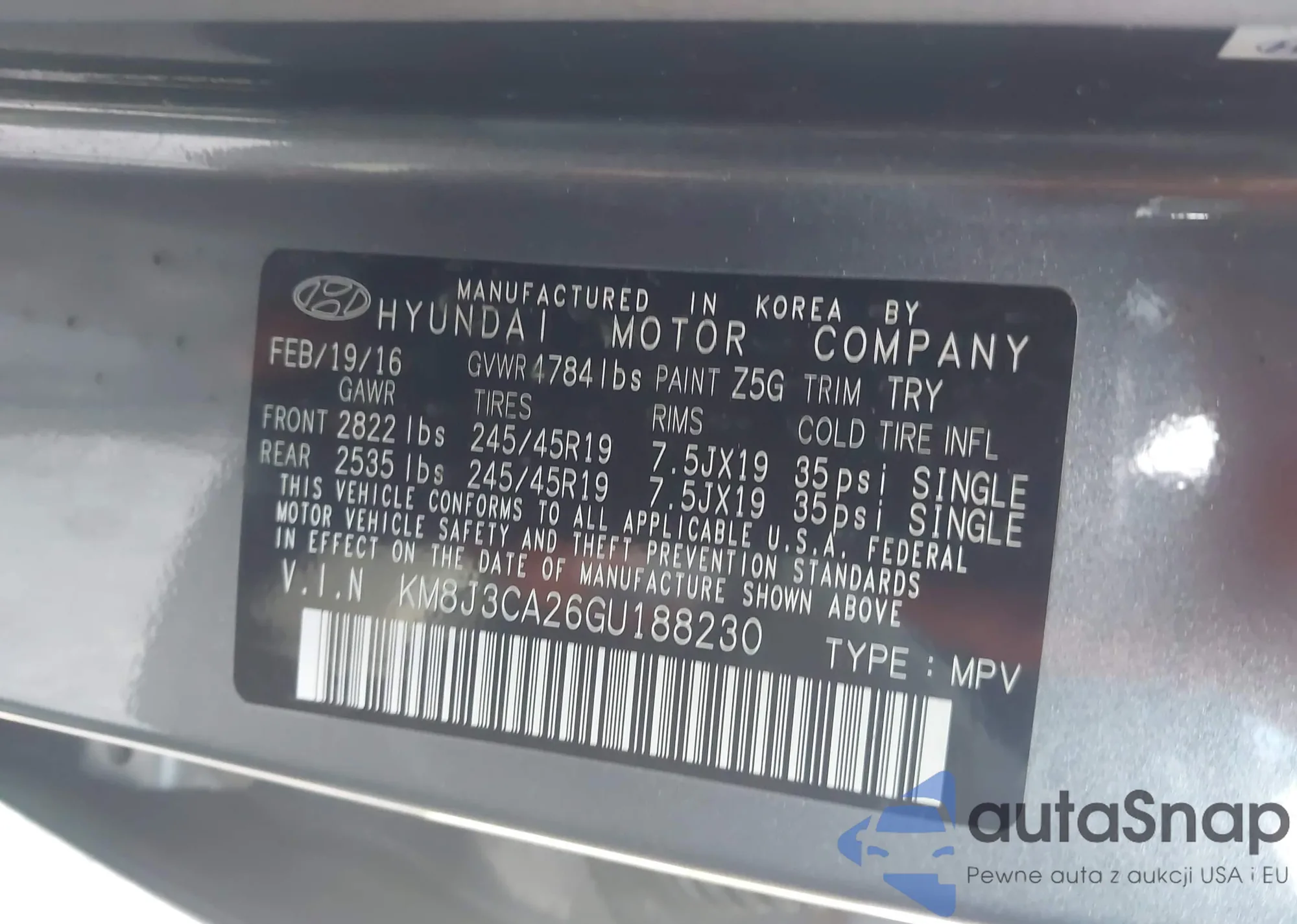 LOT: 44078215 VIN: 5NPEU46F96H065051