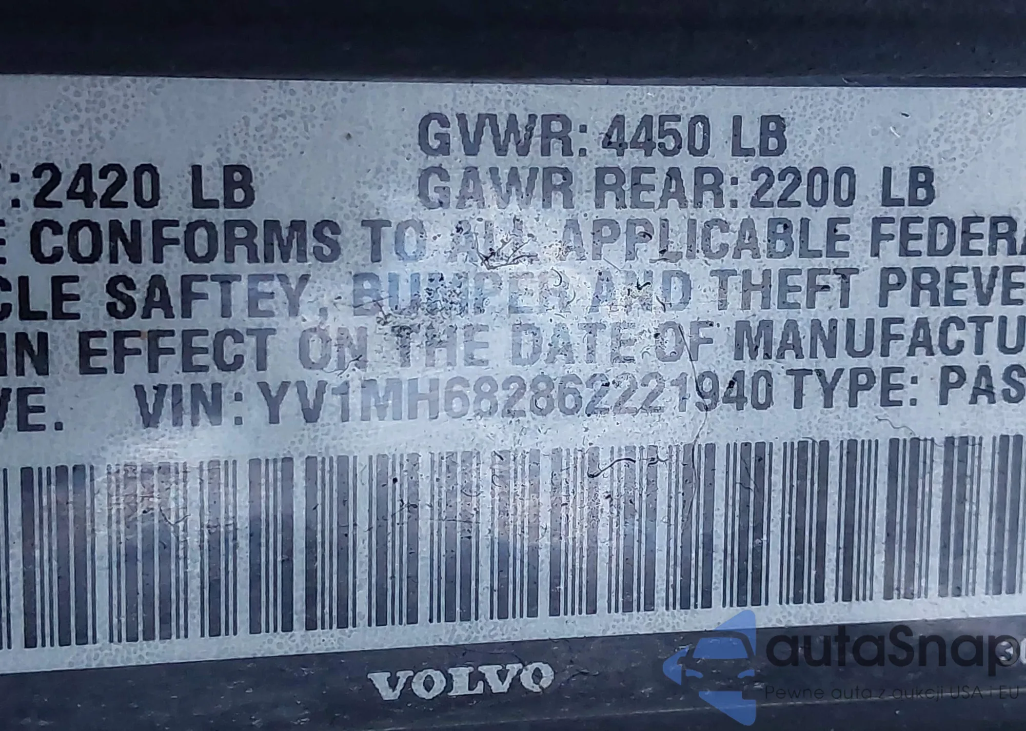 LOT: 43826510 VIN: YV1MH682862221940