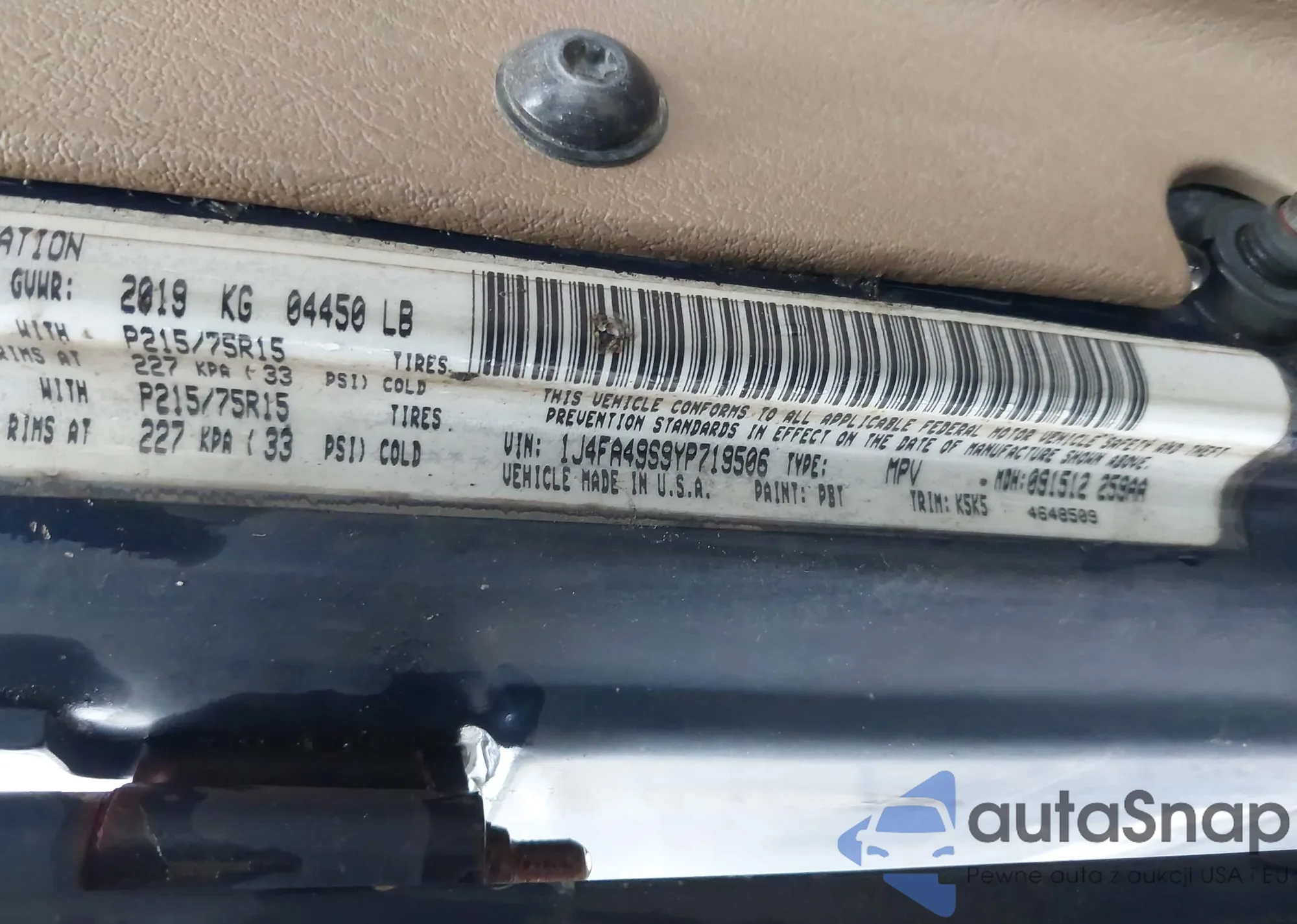 • VIN 1J4FA49S9YP719506