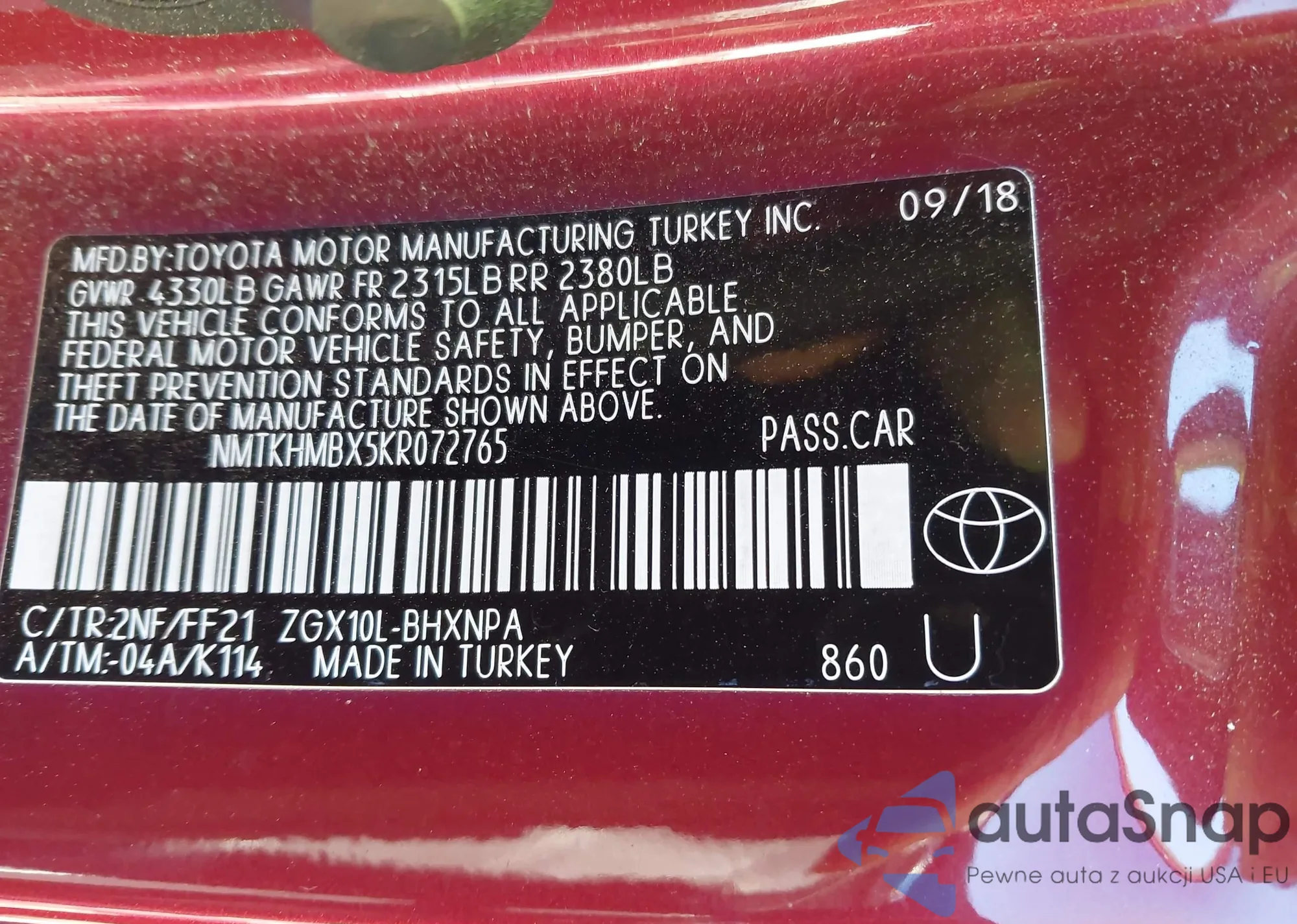 LOT: 44048312 VIN: 2T3JFREV0HW611522