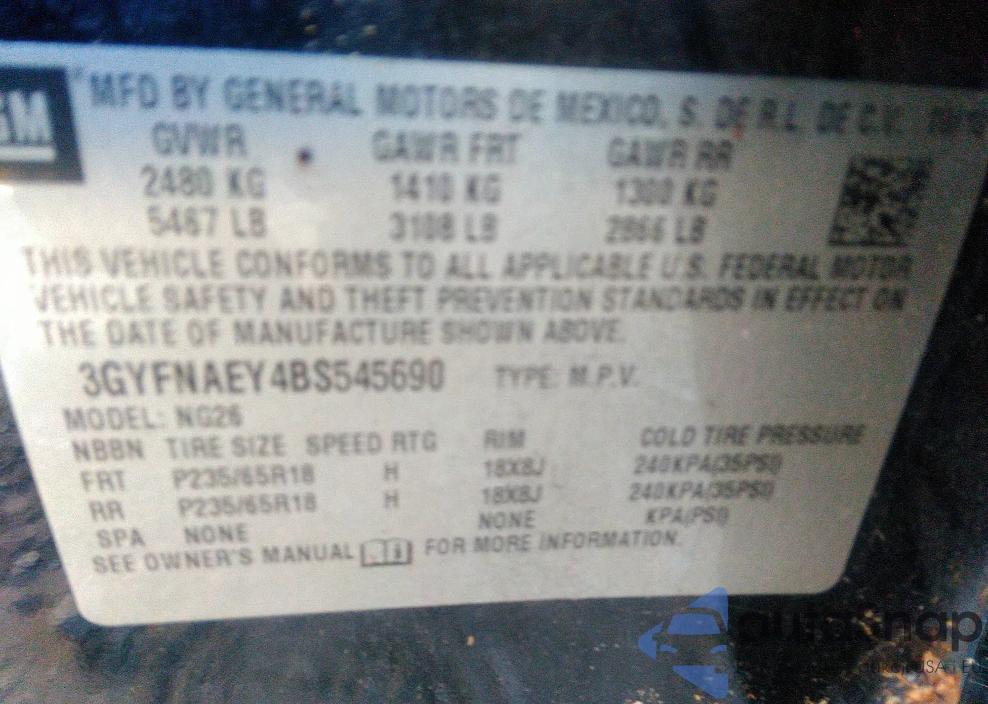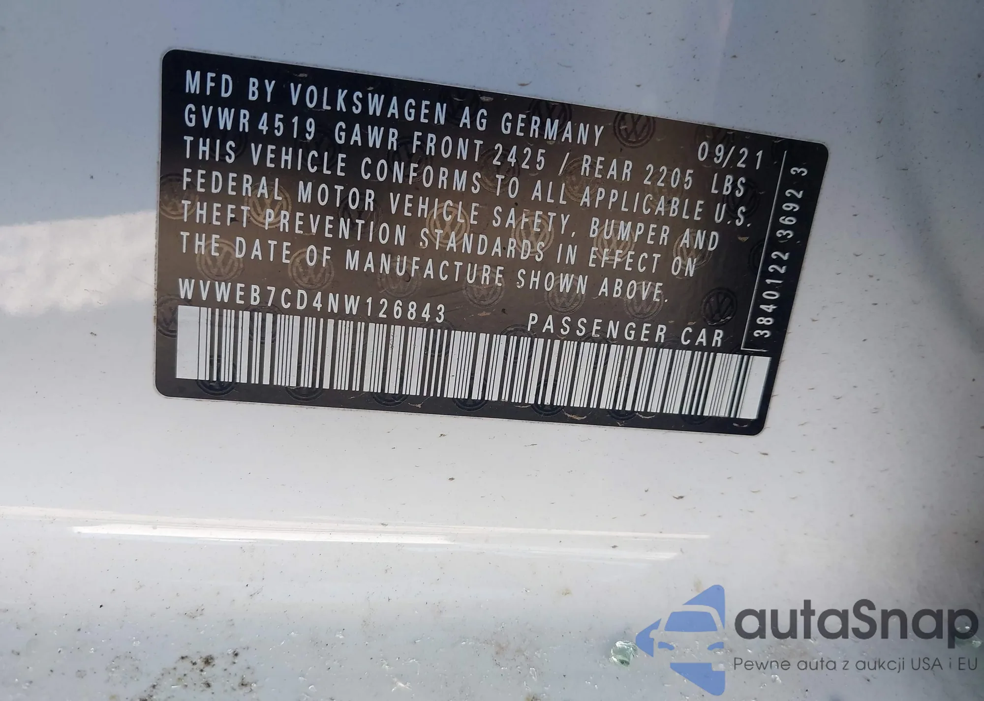 • VIN SAJAR4BG5HA973846