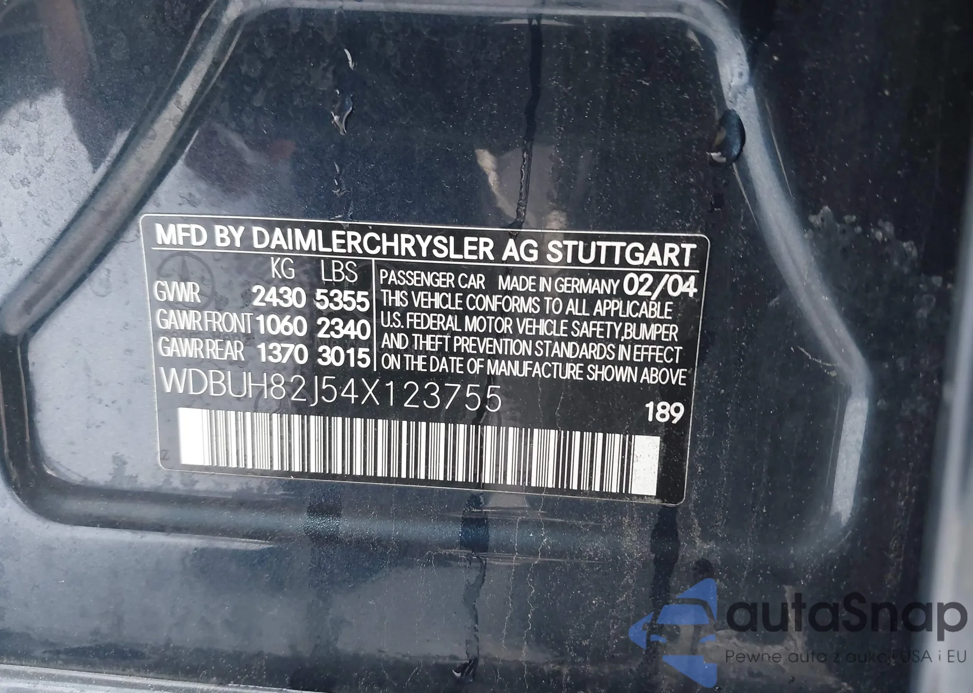 • VIN WDBUH82J54X123755