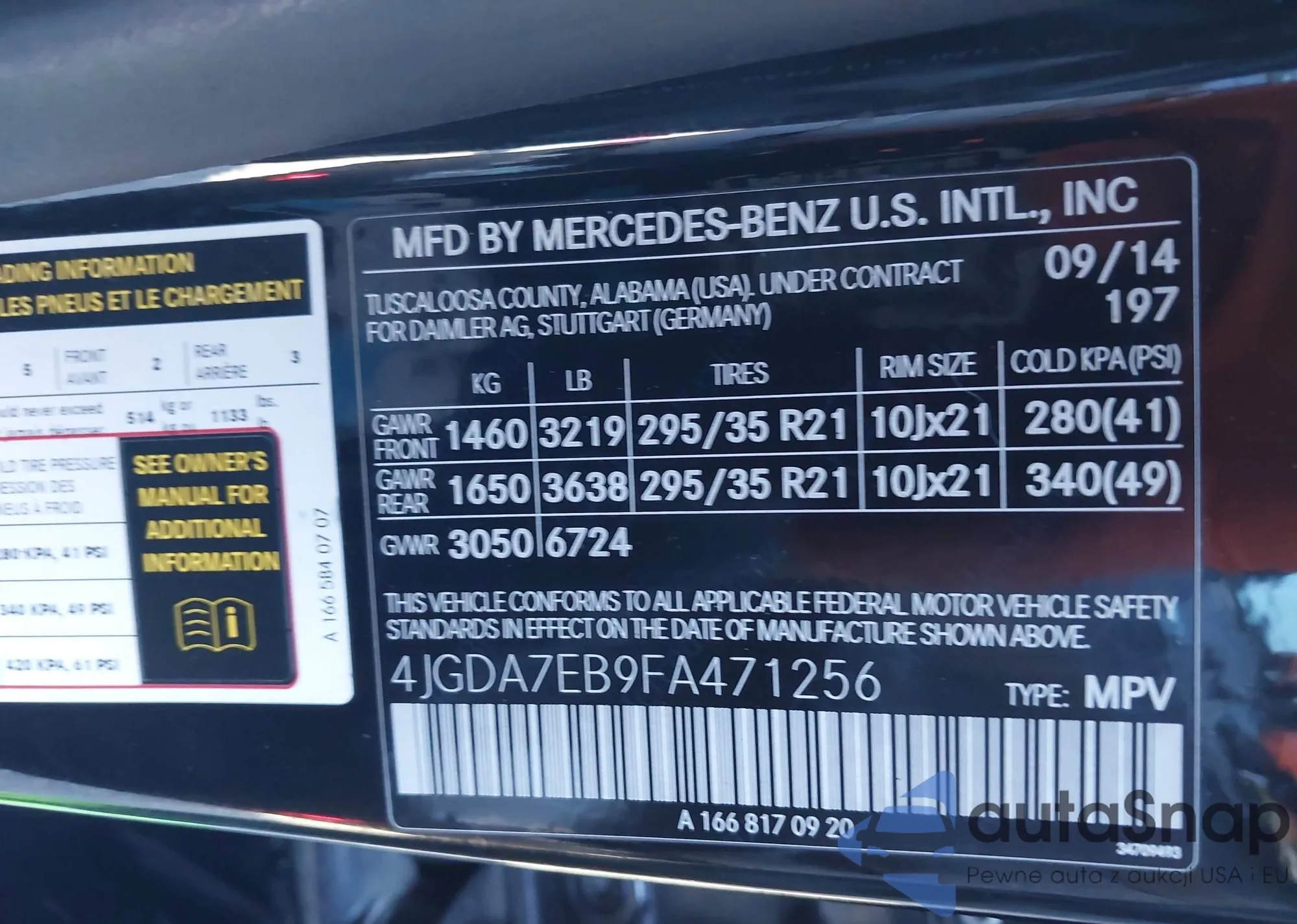 • VIN 4JGDA7EB9FA471256