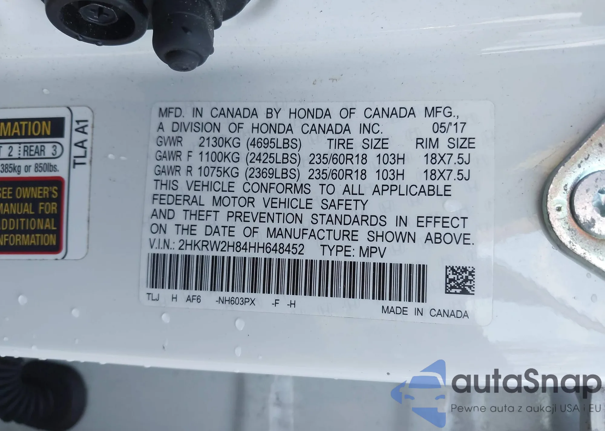 • VIN 2HKRW2H84HH648452