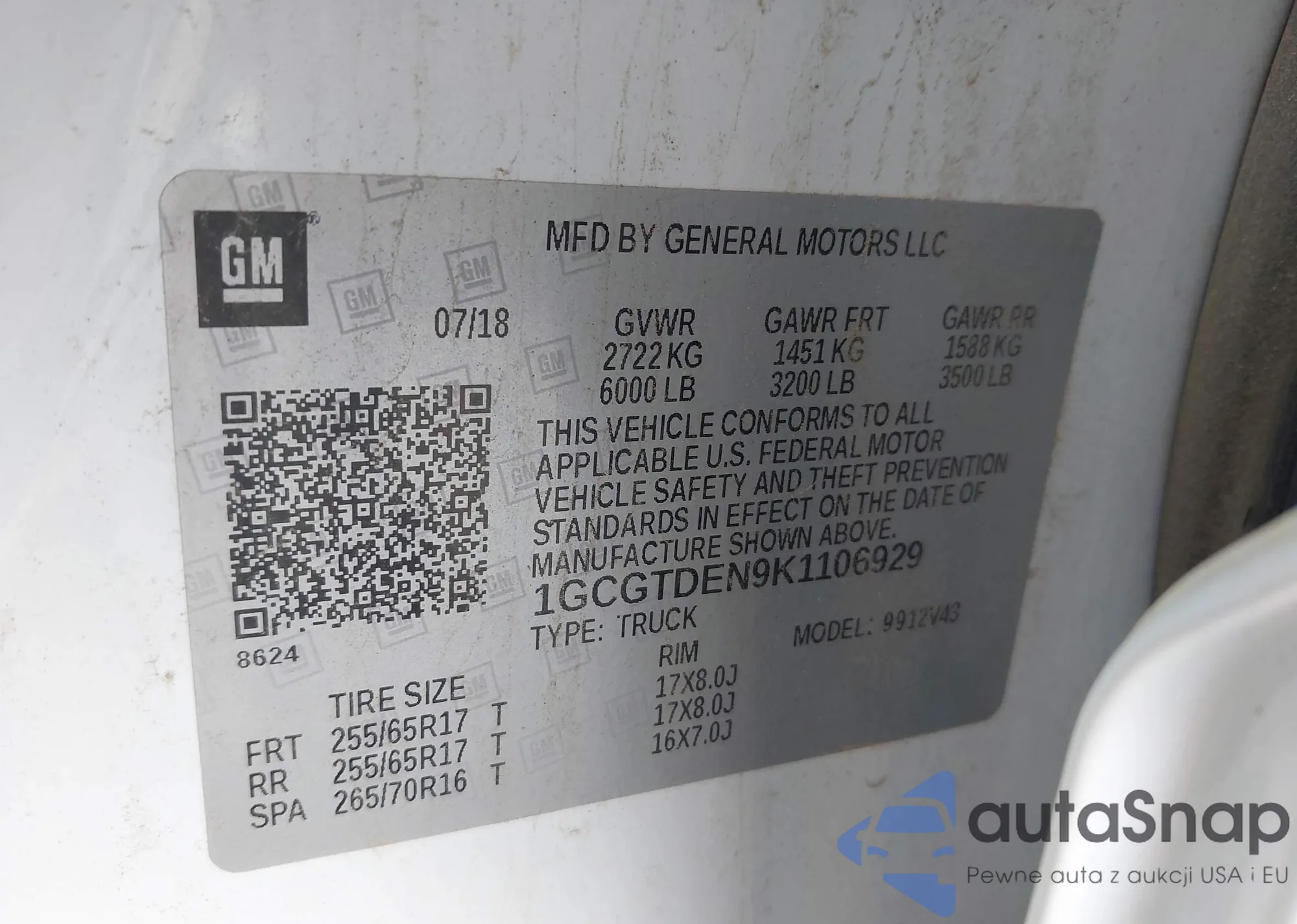 • VIN 1GCGTDEN9K1106929