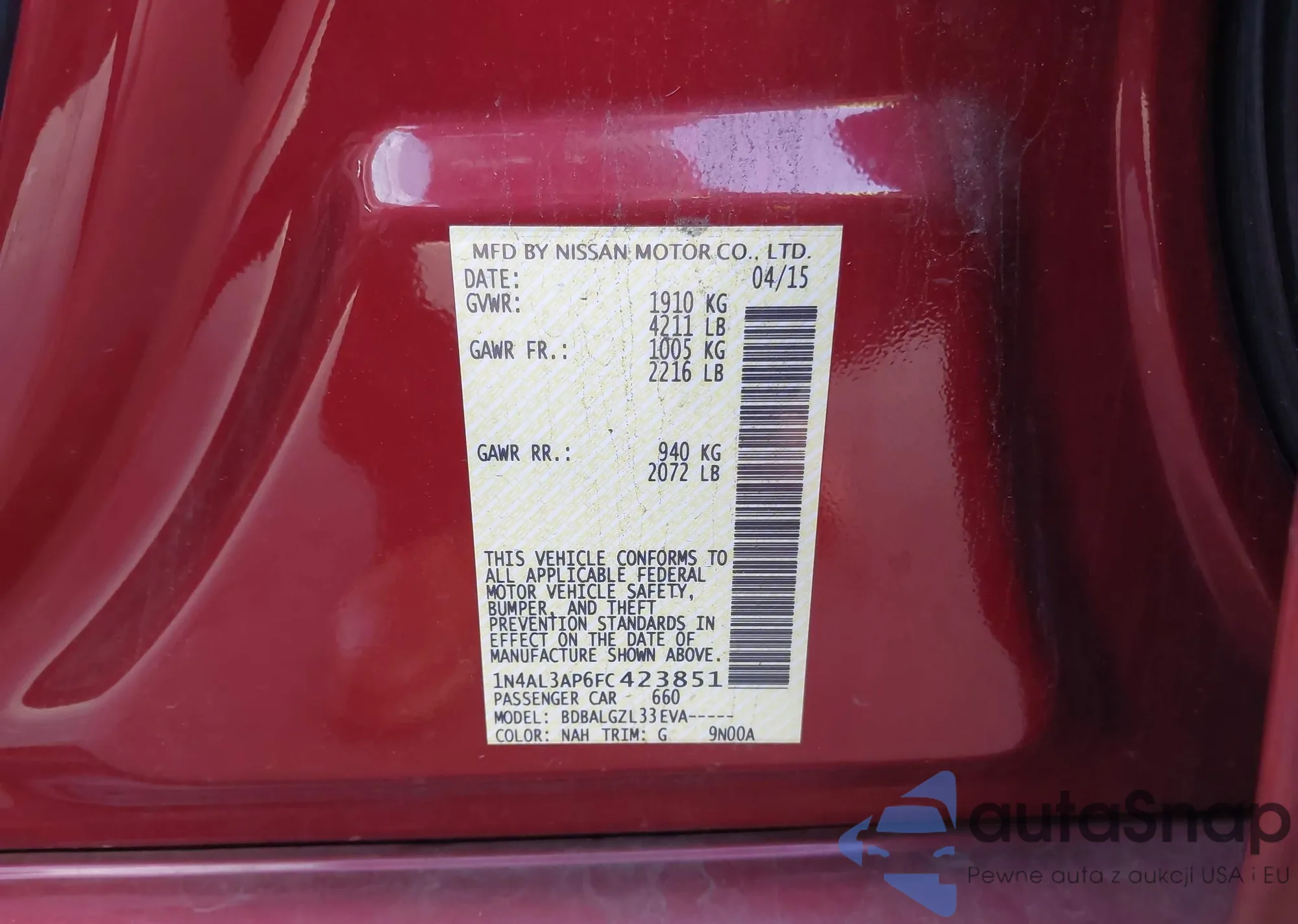 LOT: 44076282 VIN: 1N4AL3AP6FC423851